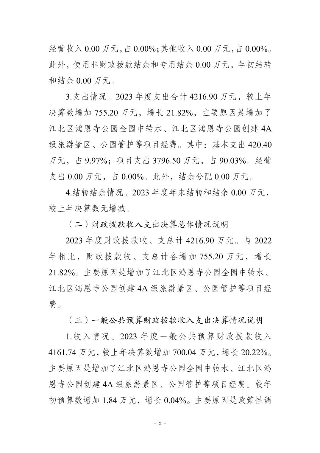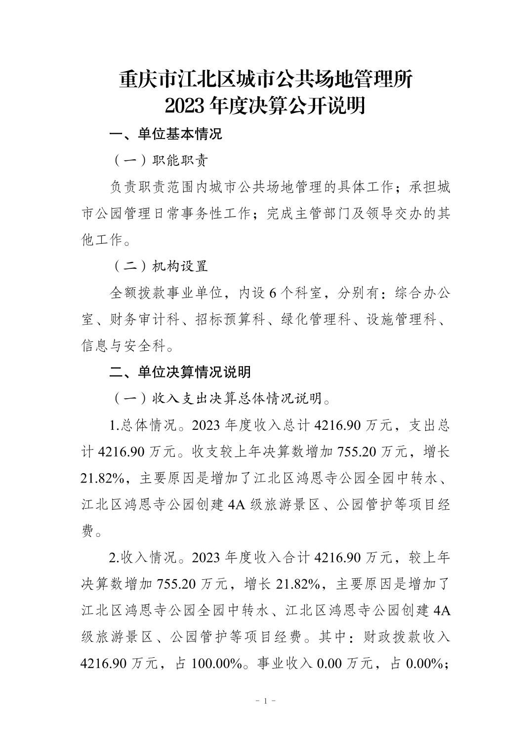 重慶市江北區(qū)城市公共場地管理所2023 年度決算公開說明