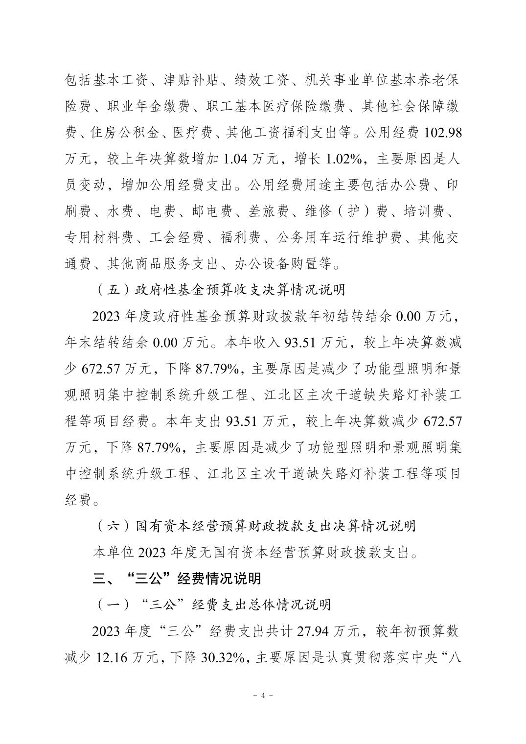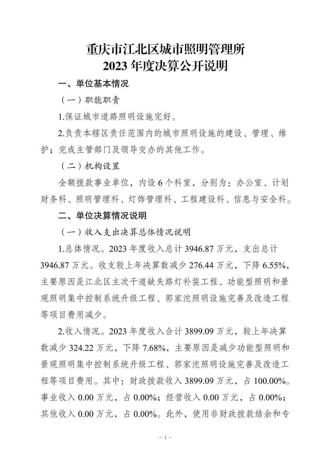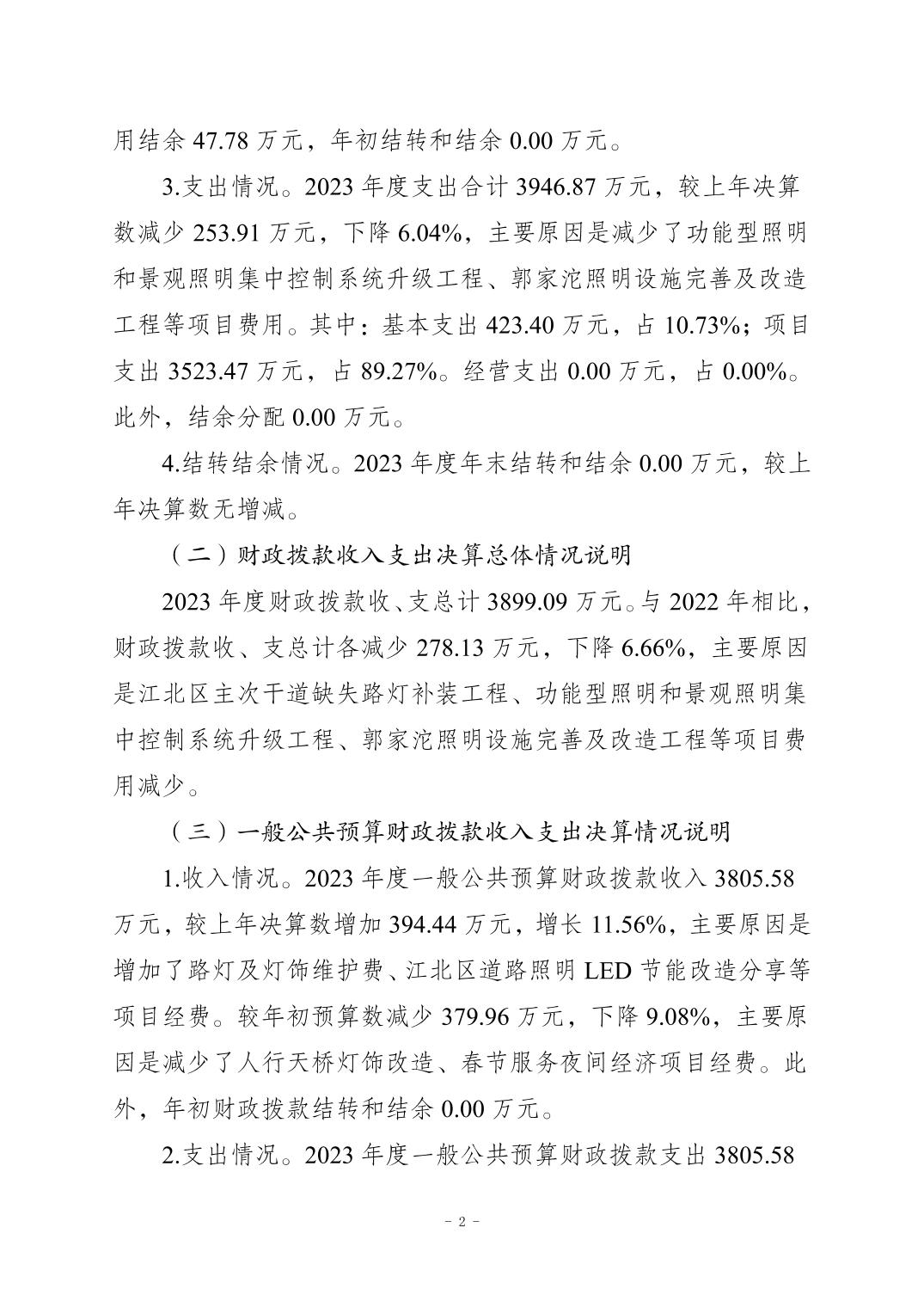 重慶市江北區(qū)城市照明管理所2023 年度決算公開說(shuō)明