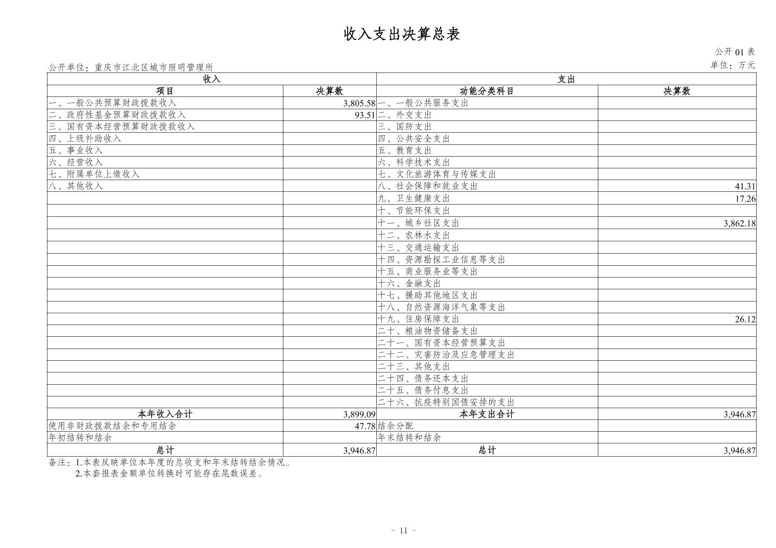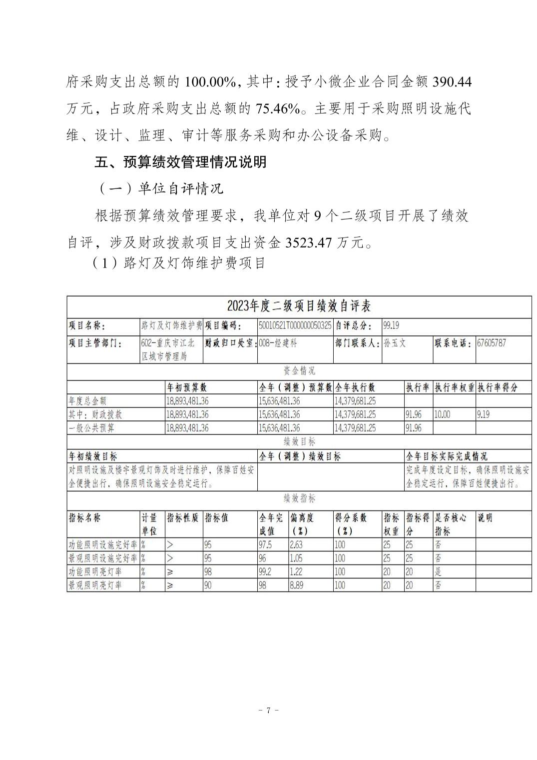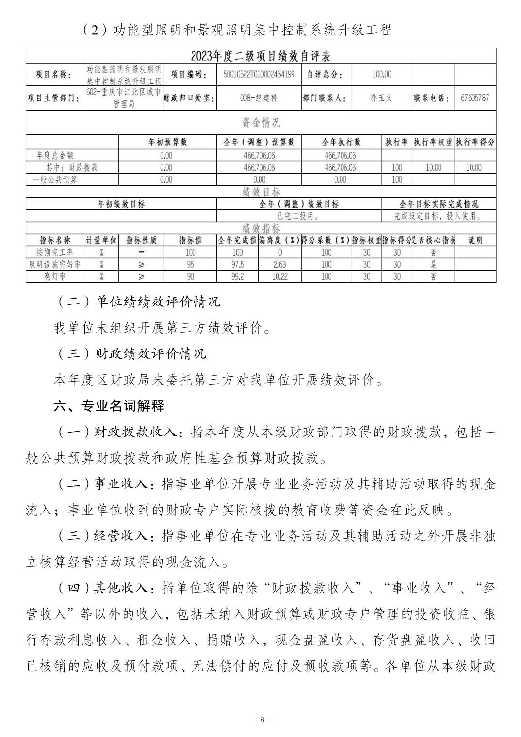 重慶市江北區(qū)城市照明管理所2023 年度決算公開說(shuō)明