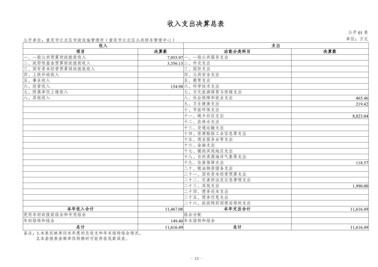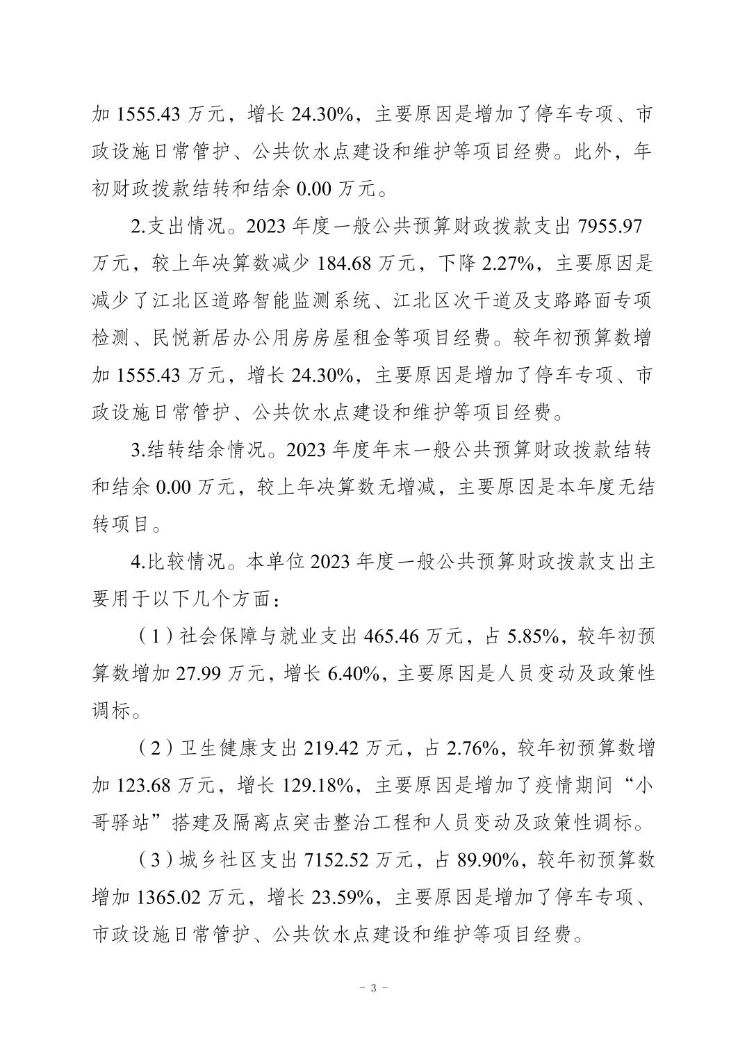 重慶市江北區(qū)市政設(shè)施管理所(重慶市江北區(qū)公共停車管理中心)2023 年度決算公開(kāi)說(shuō)明