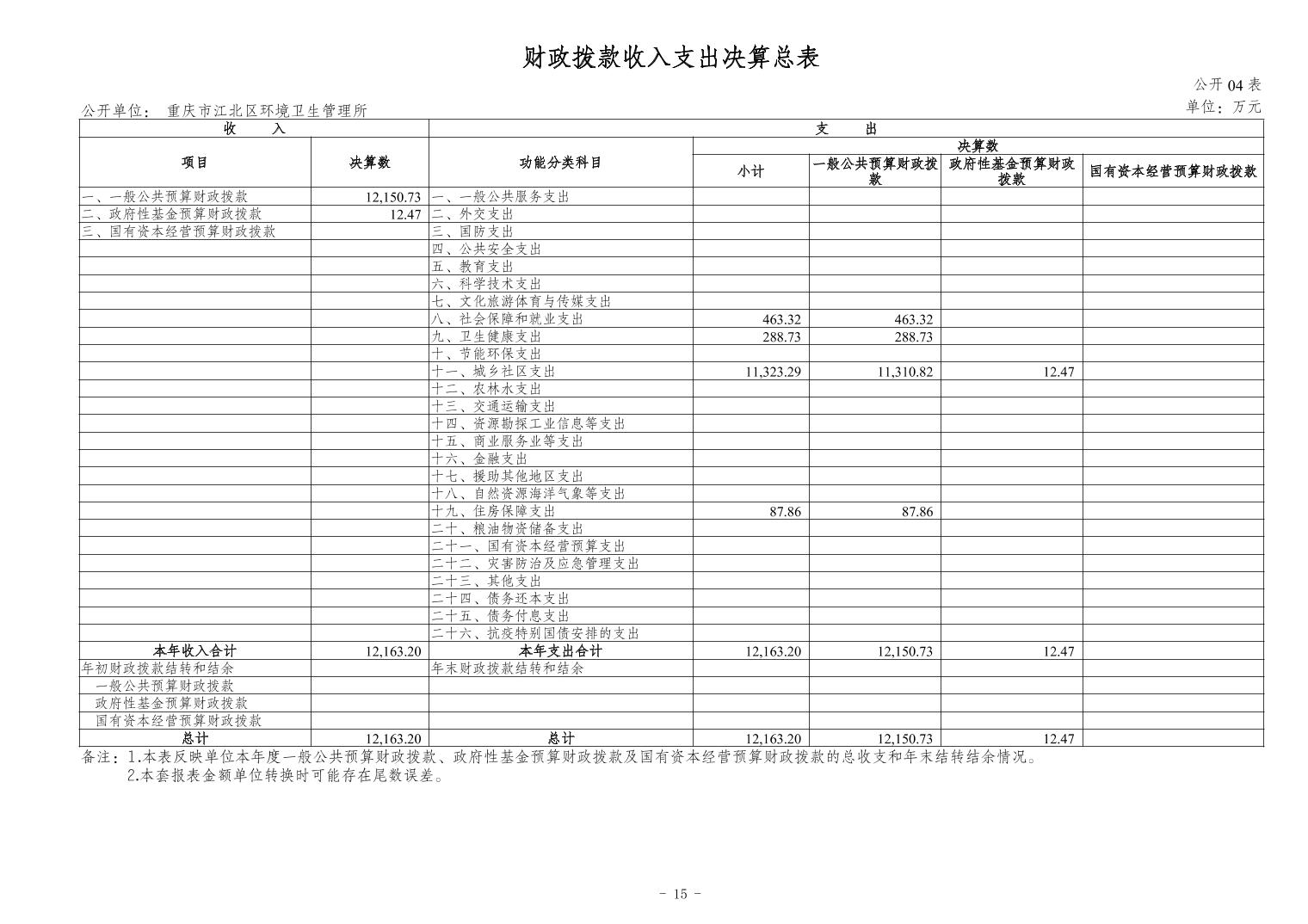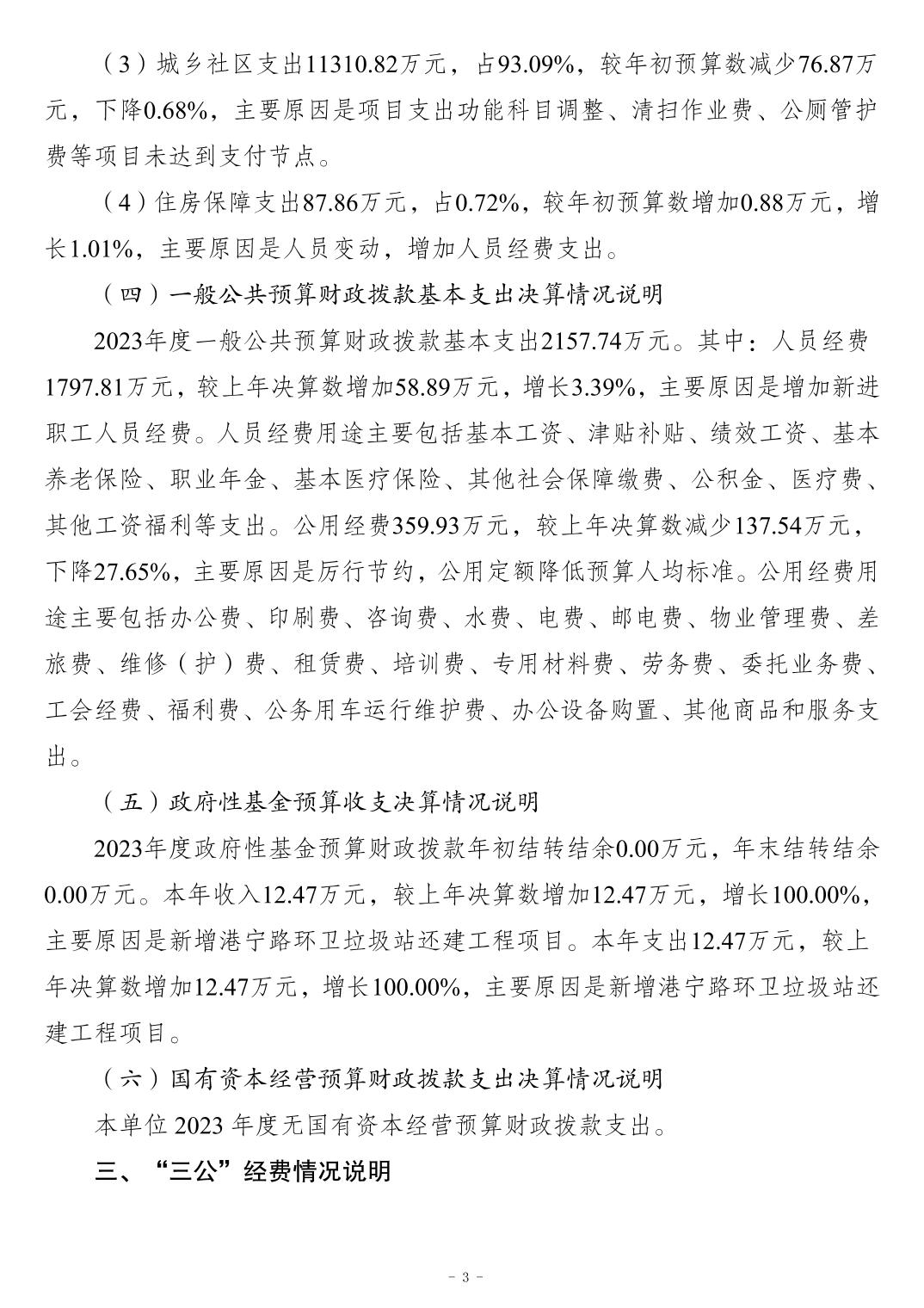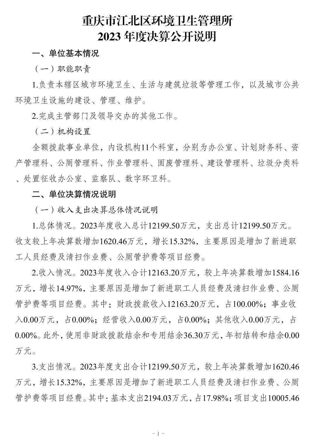 重慶市江北區(qū)環(huán)境衛(wèi)生管理所2023 年度決算公開說明