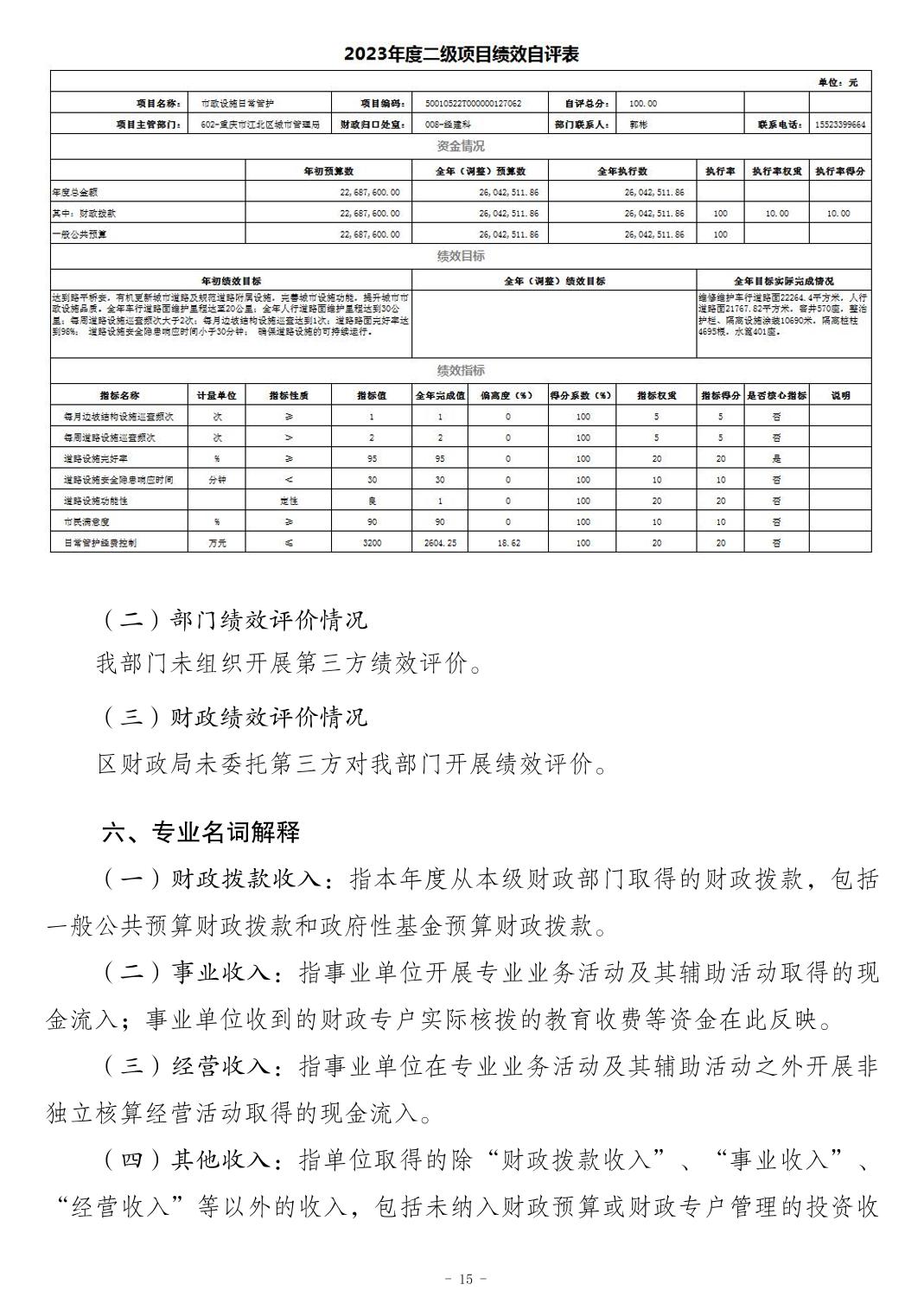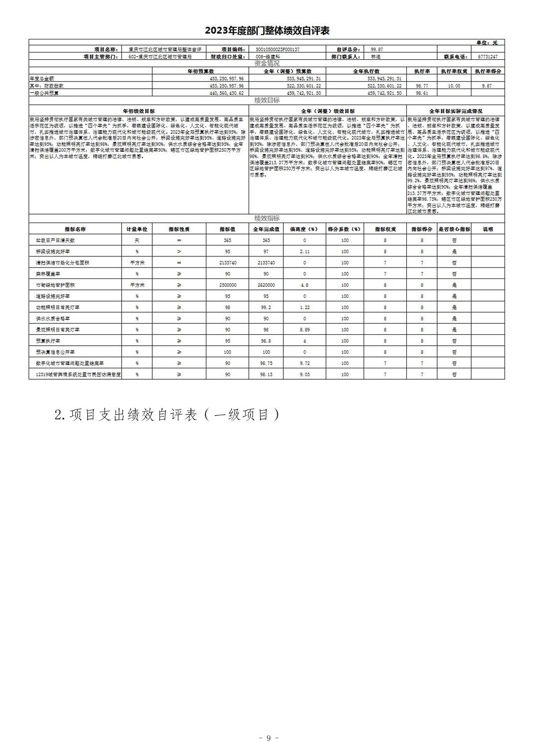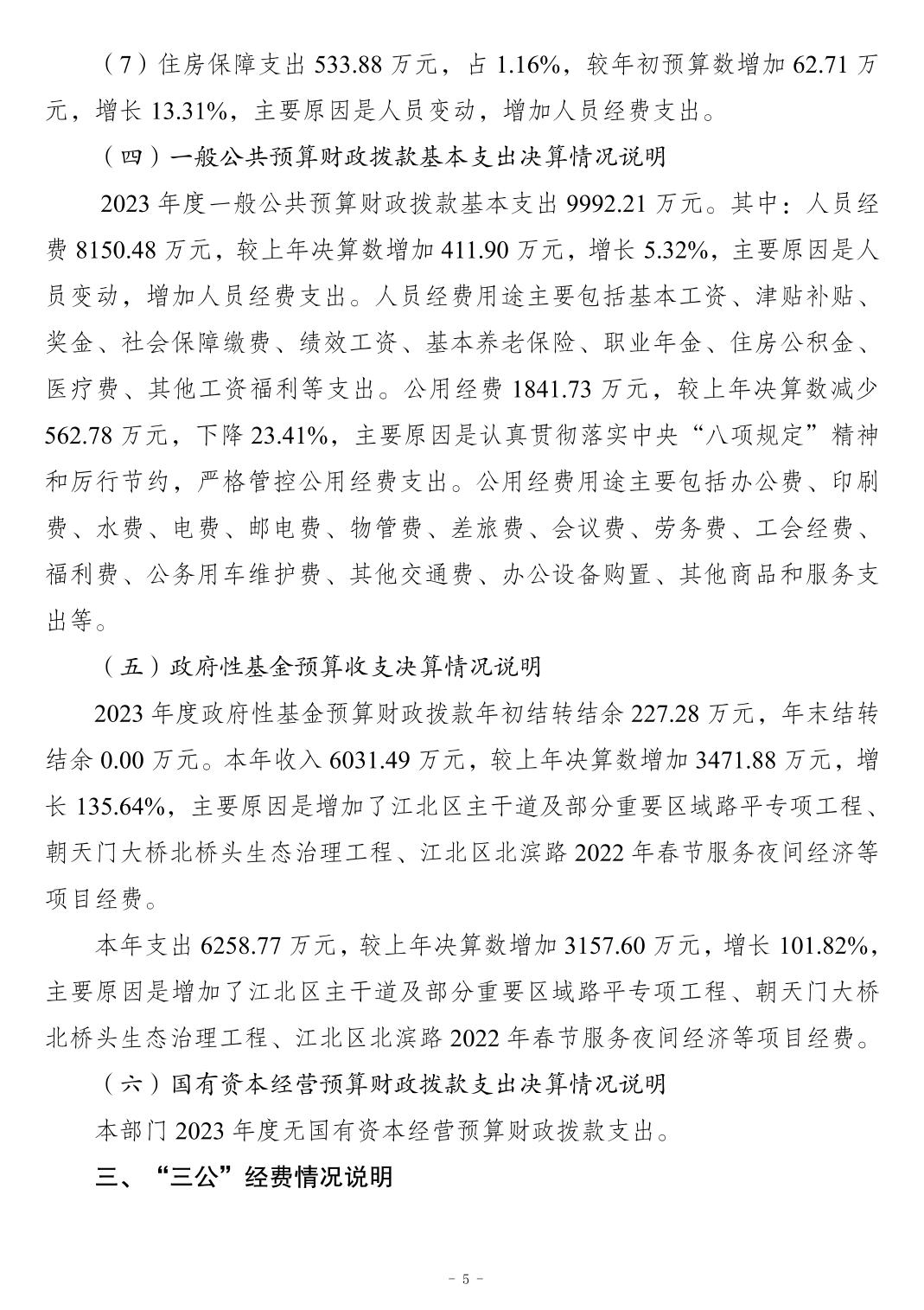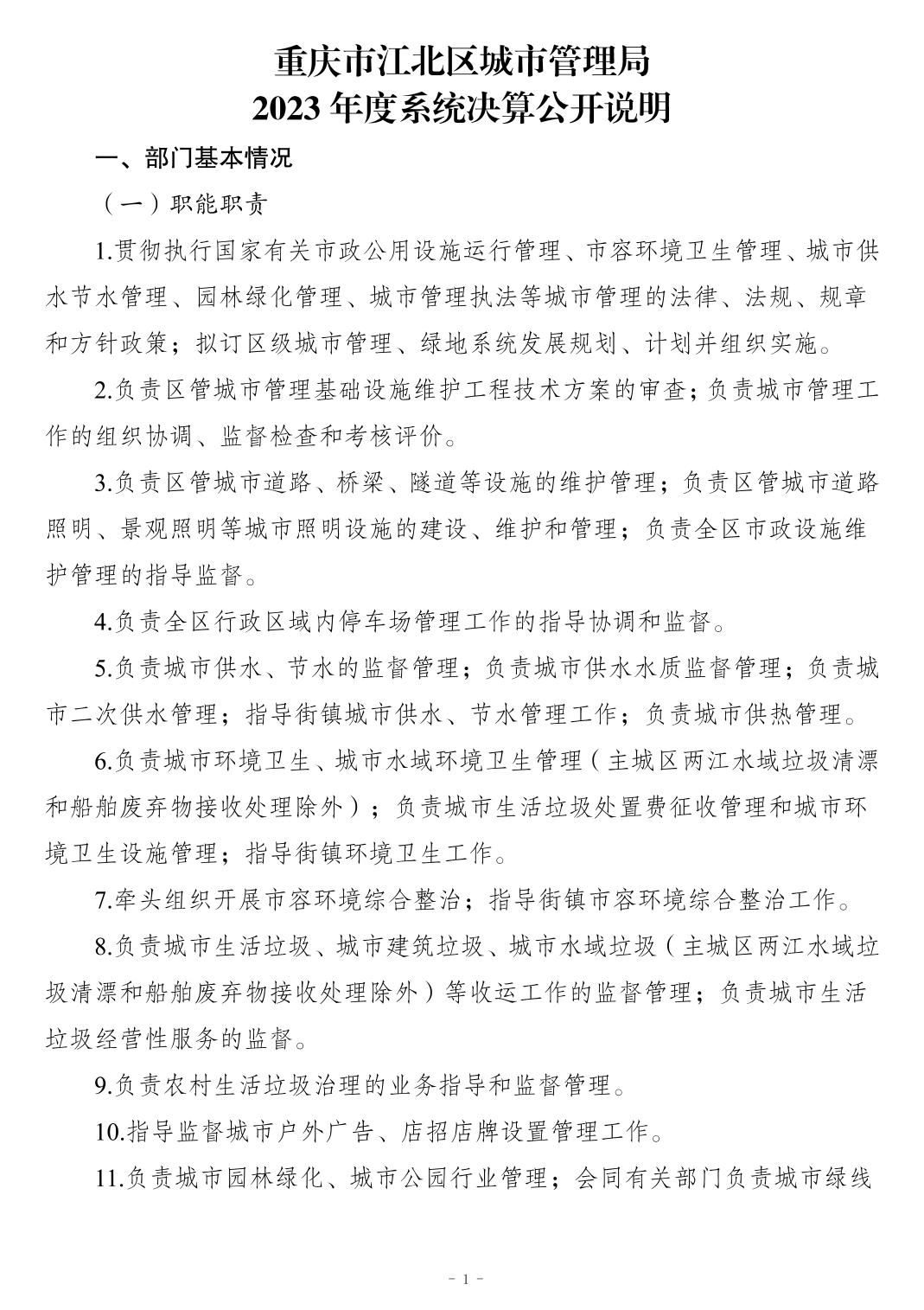 重慶市江北區城市管理局2023 年度系統決算公開說明