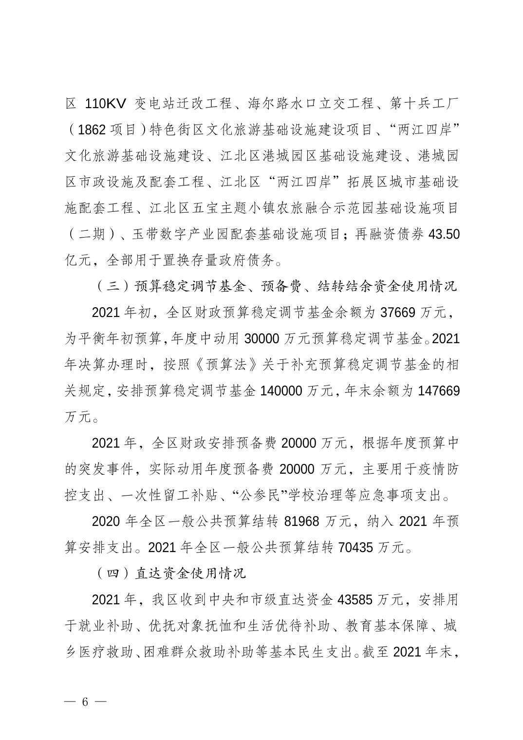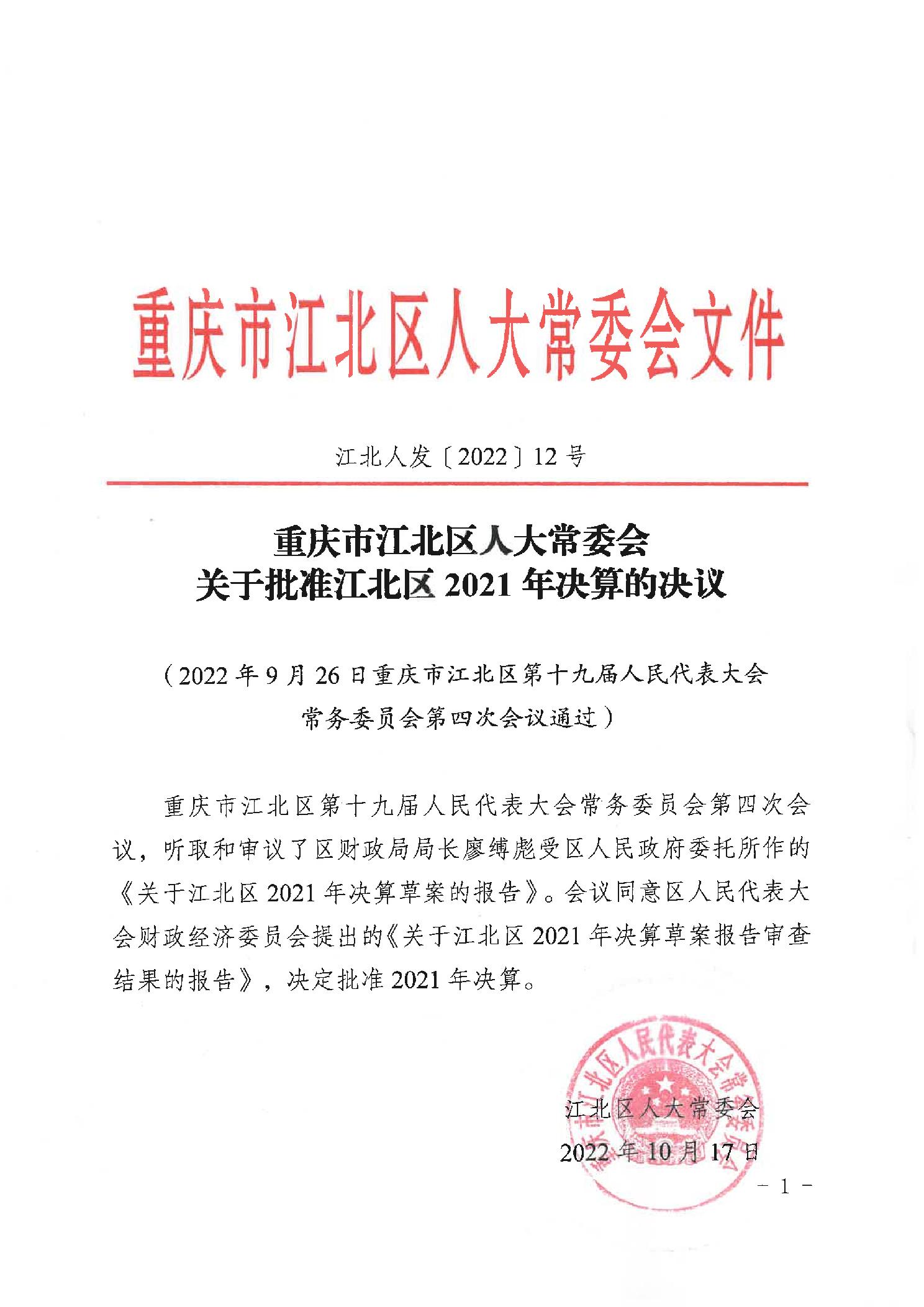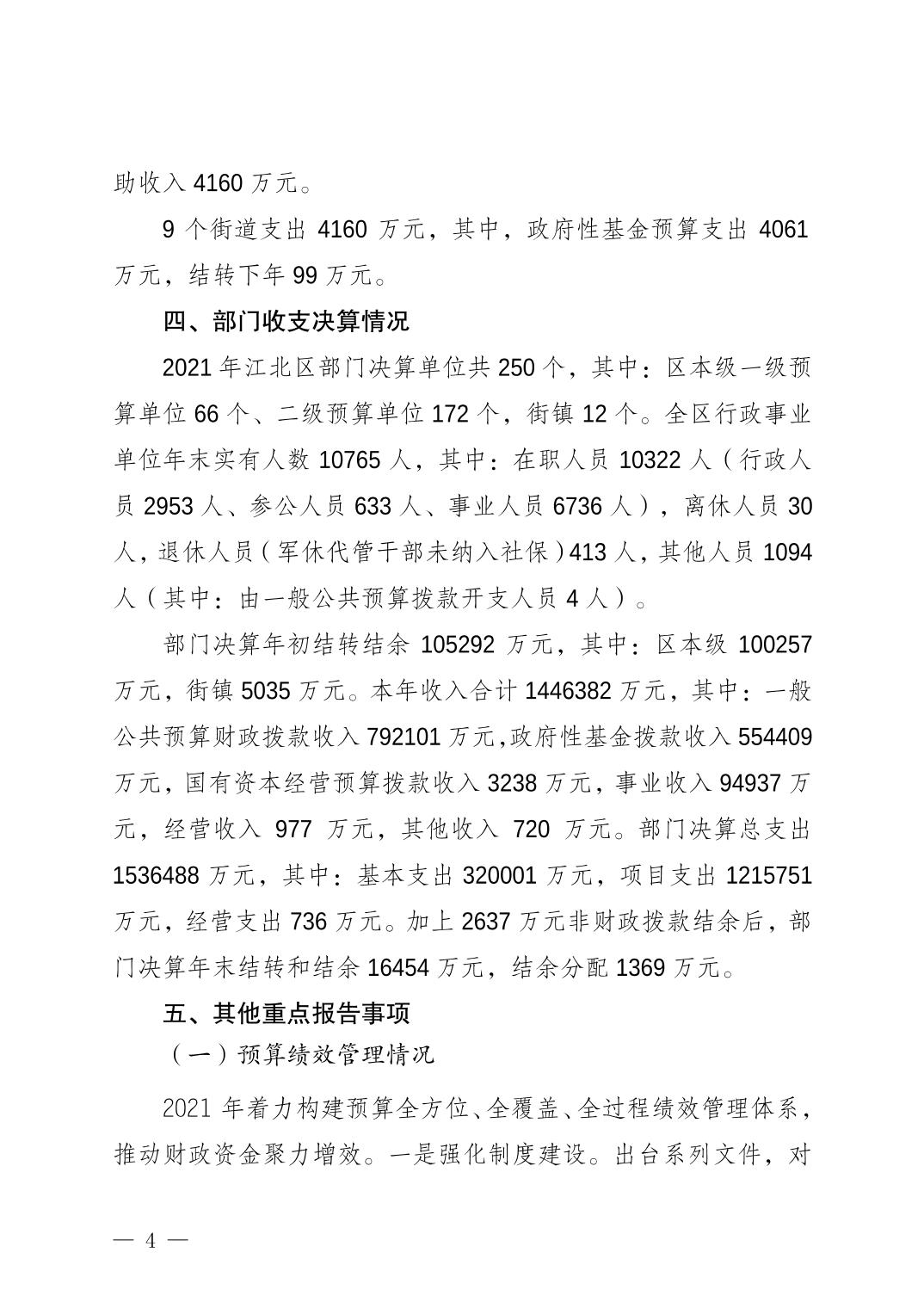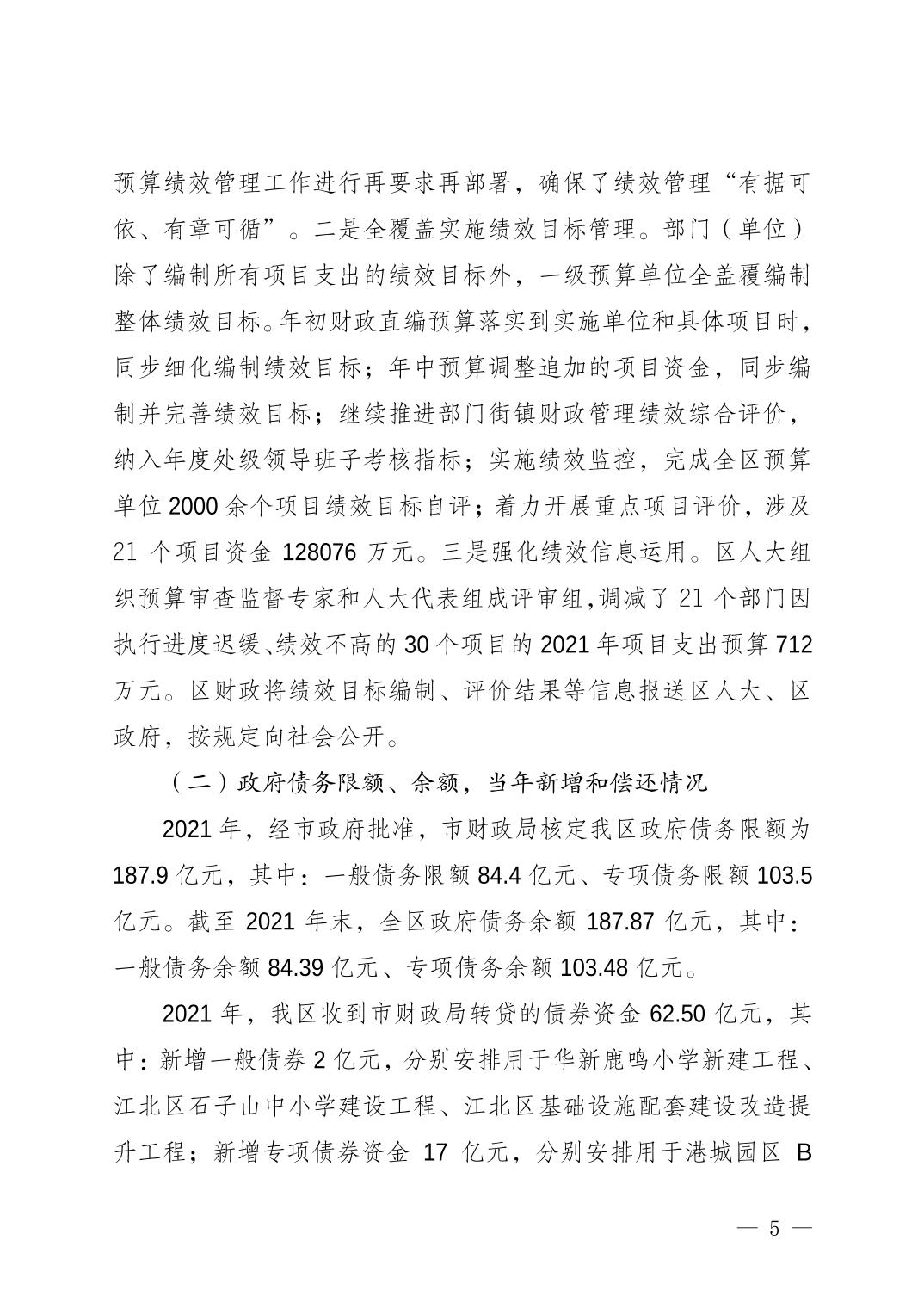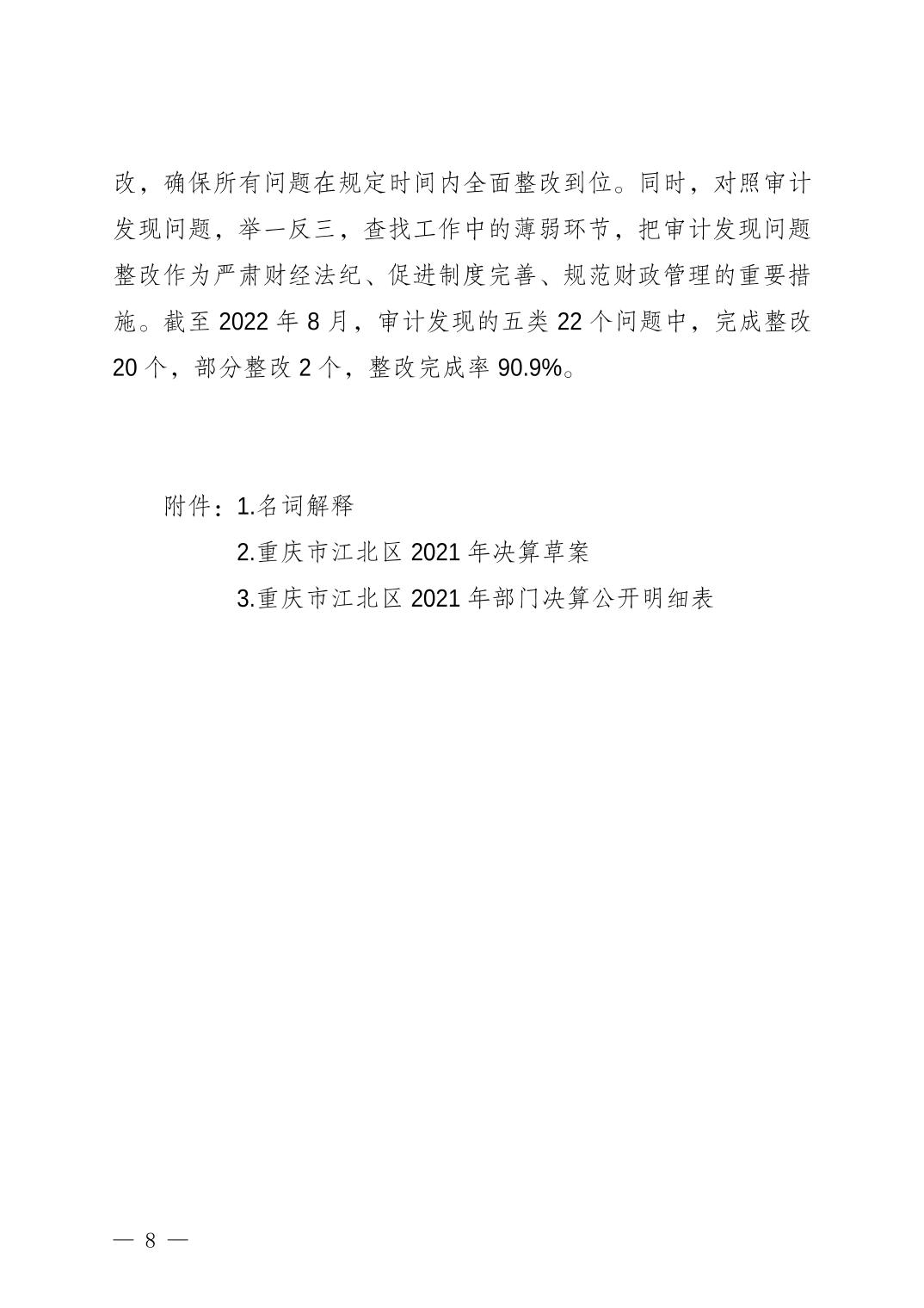 重慶市江北區(qū)人民政府關(guān)于江北區(qū)2021年決算的報(bào)告