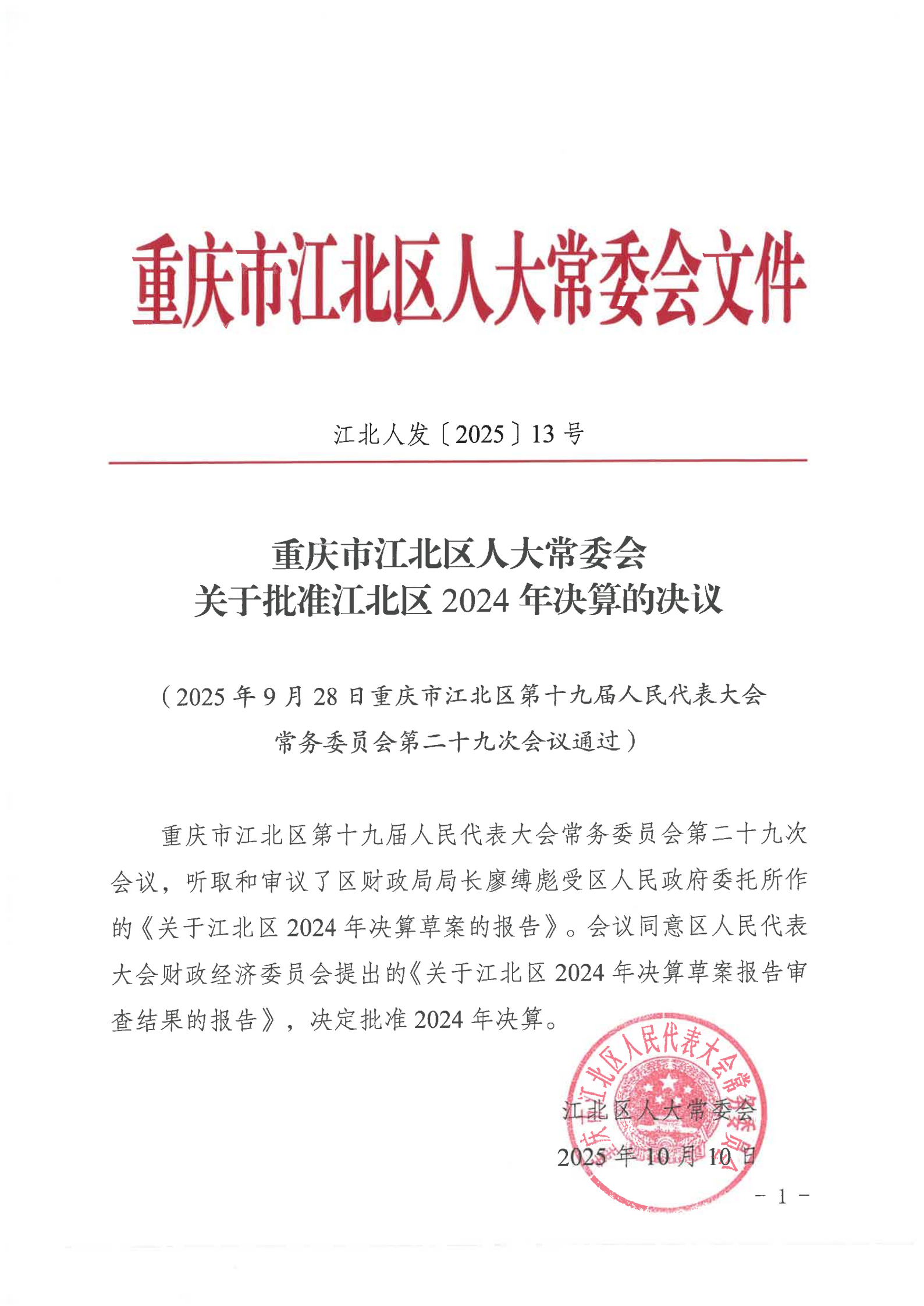 重慶市江北區人民政府關于2024年決算的報告