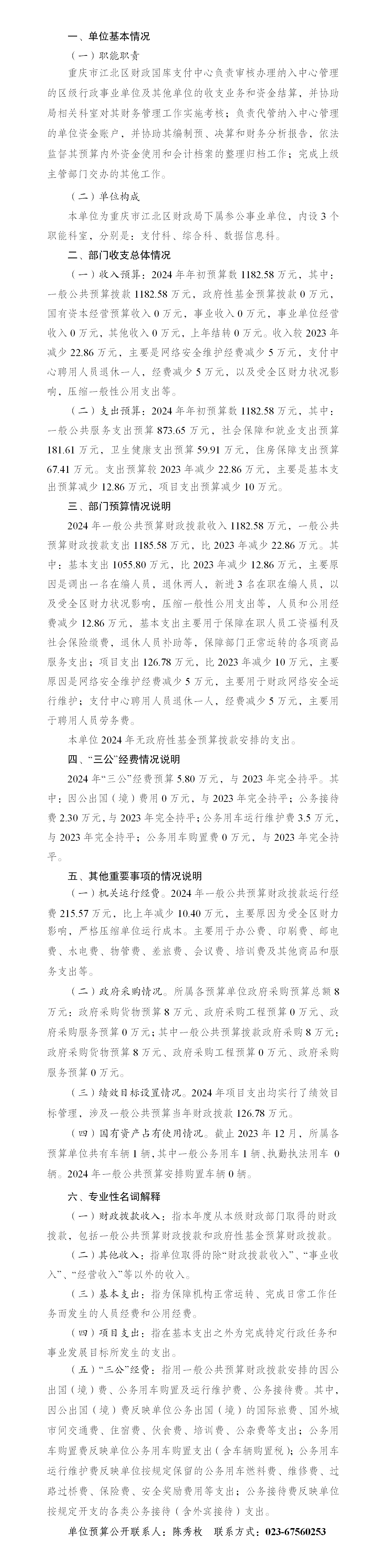 重慶市江北區財政國庫支付中心2024年部門預算情況說明
