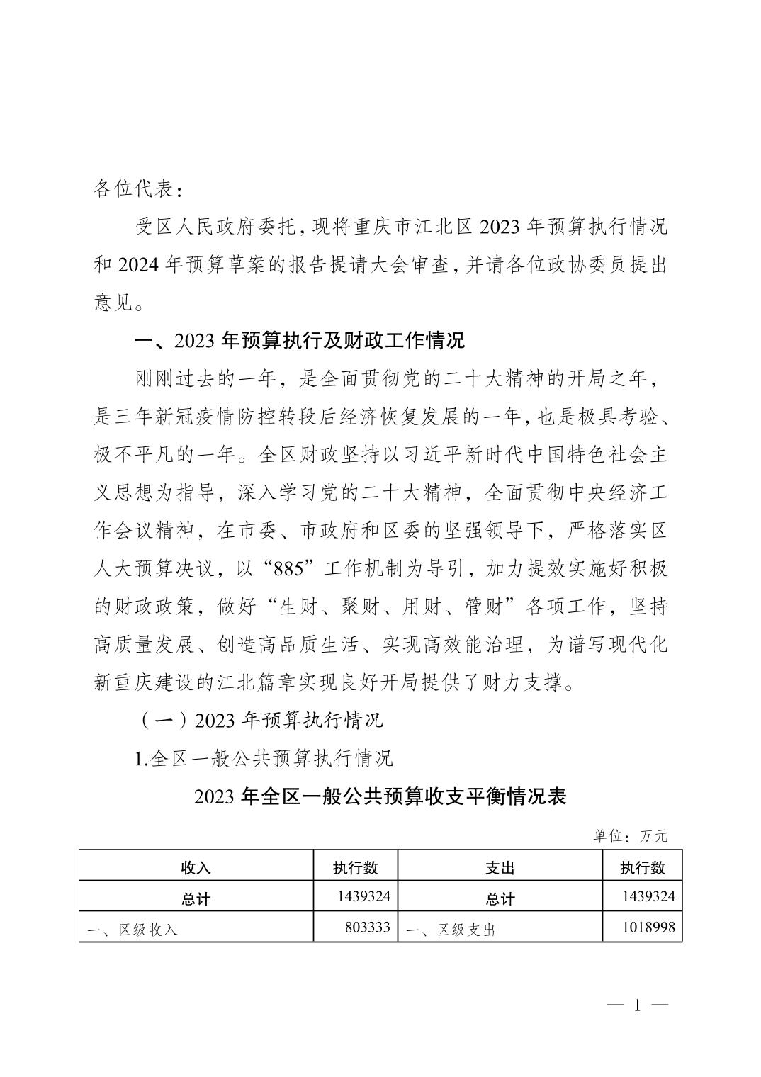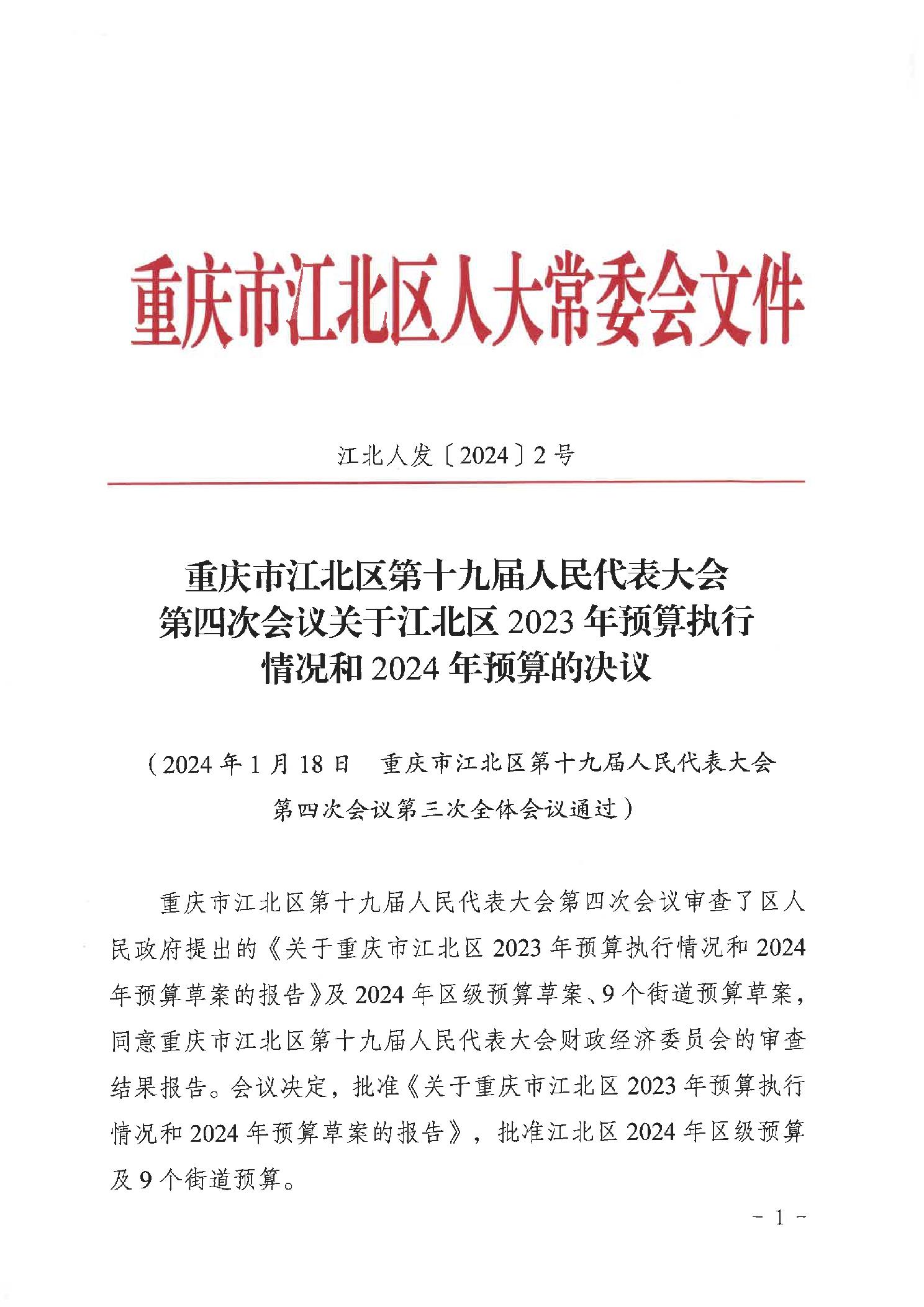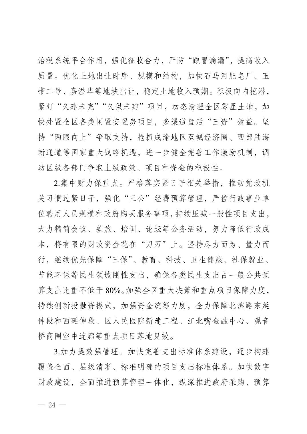 關(guān)于重慶市江北區(qū)2023年預(yù)算執(zhí)行情況和2024年預(yù)算草案的報告