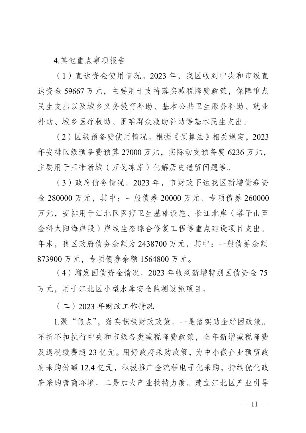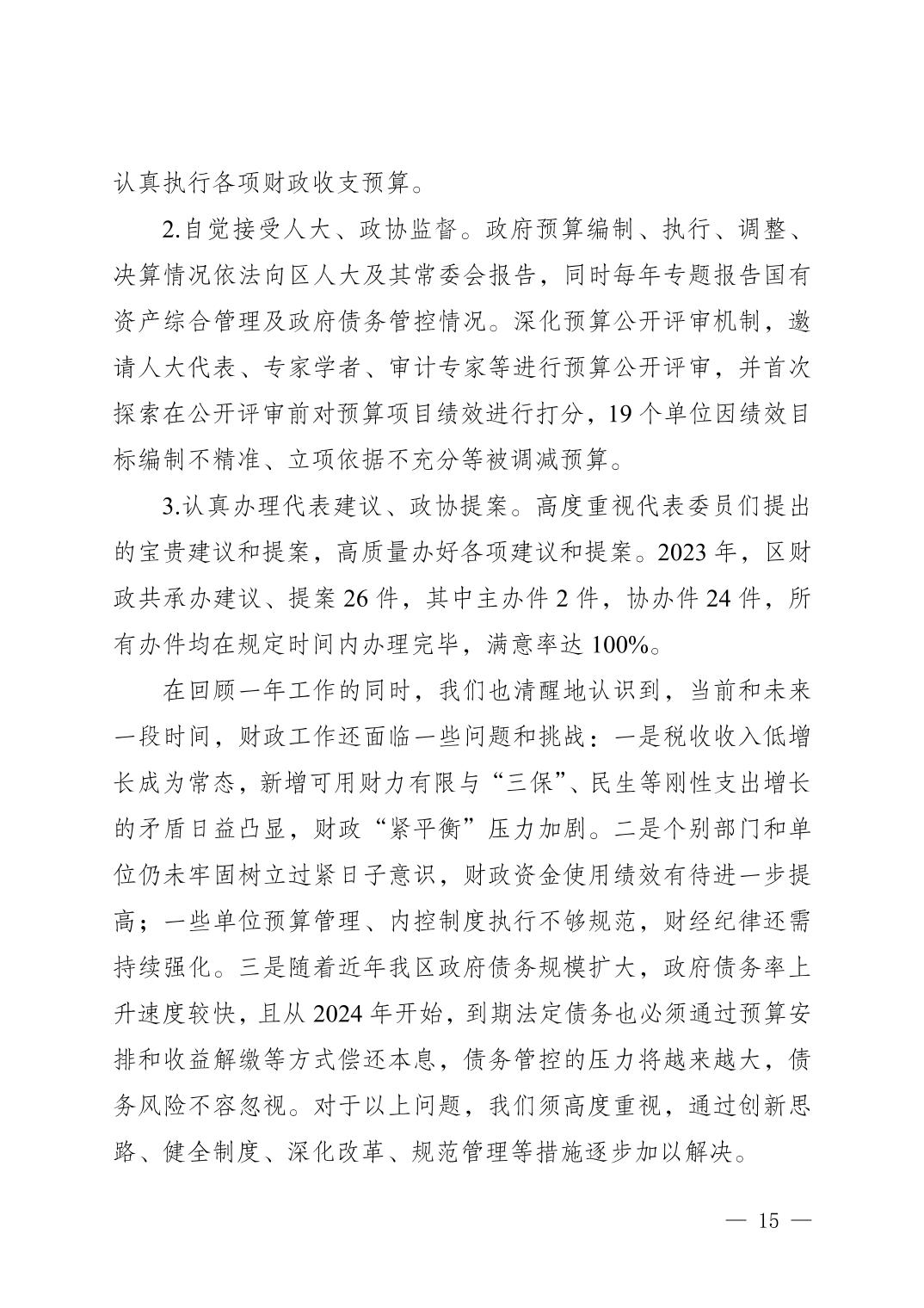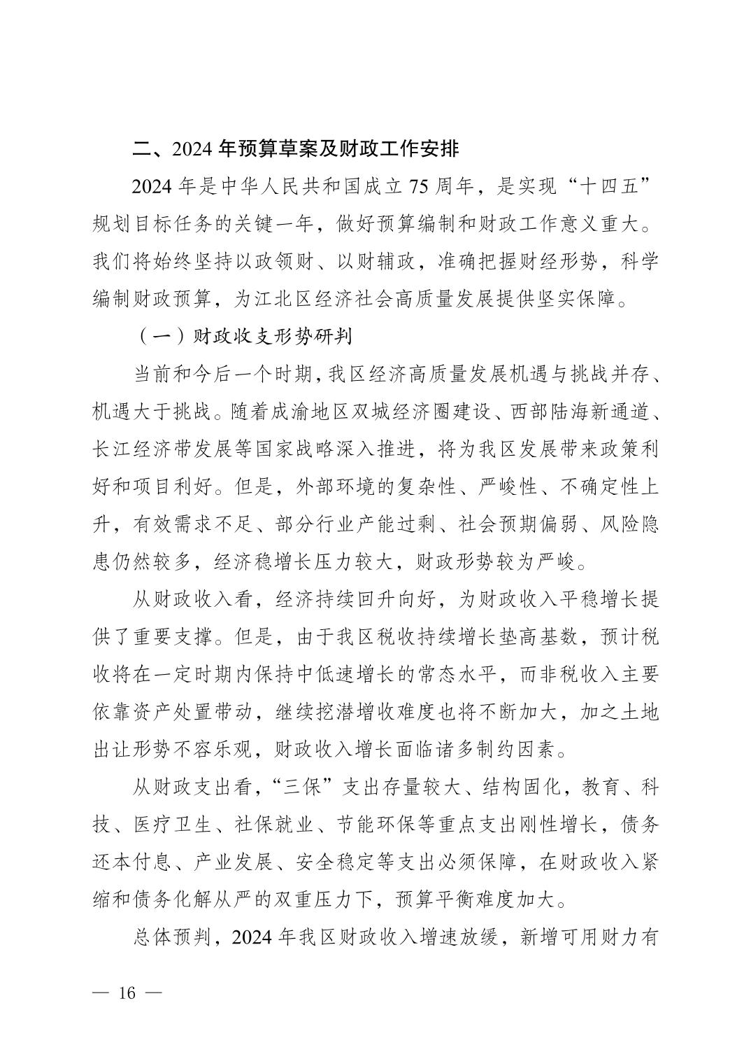 關(guān)于重慶市江北區(qū)2023年預(yù)算執(zhí)行情況和2024年預(yù)算草案的報告