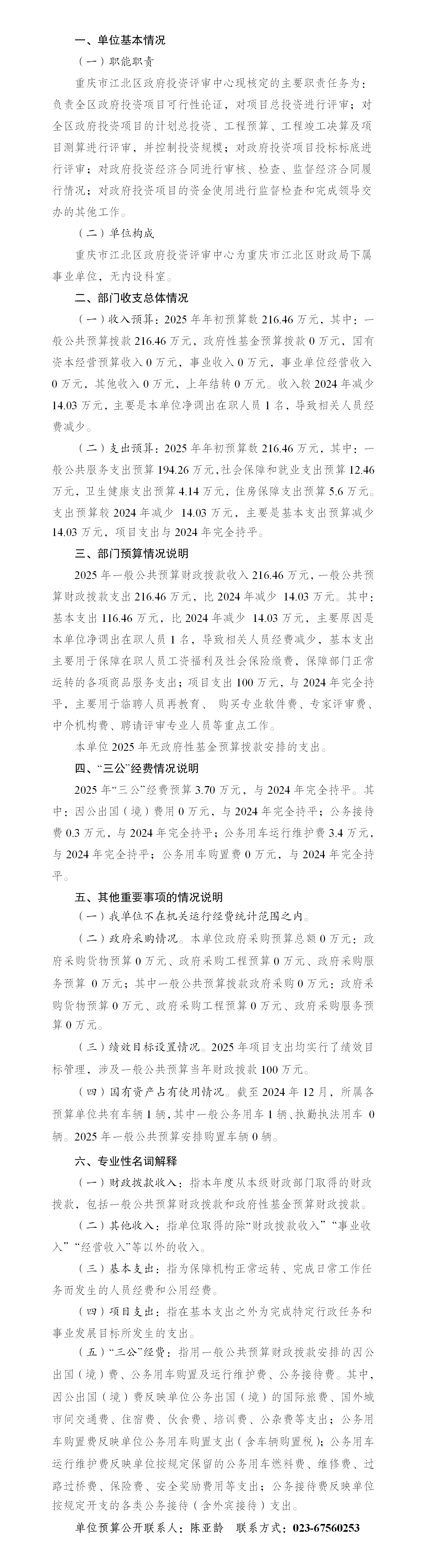 重慶市江北區政府投資評審中心2025年單位預算情況說明