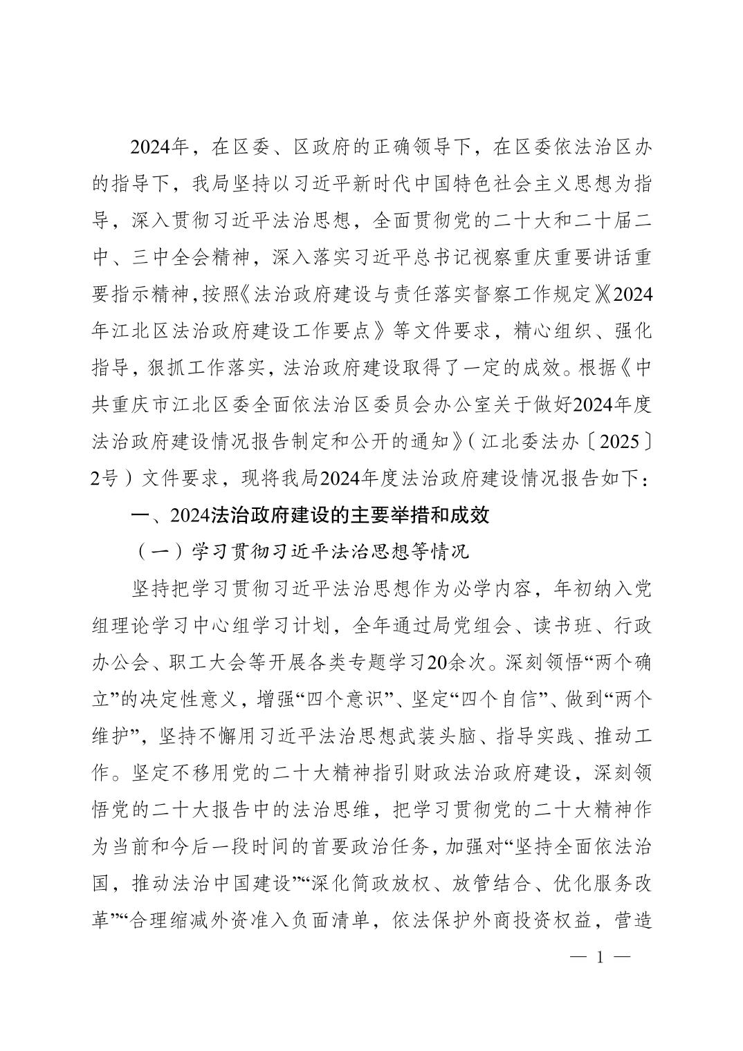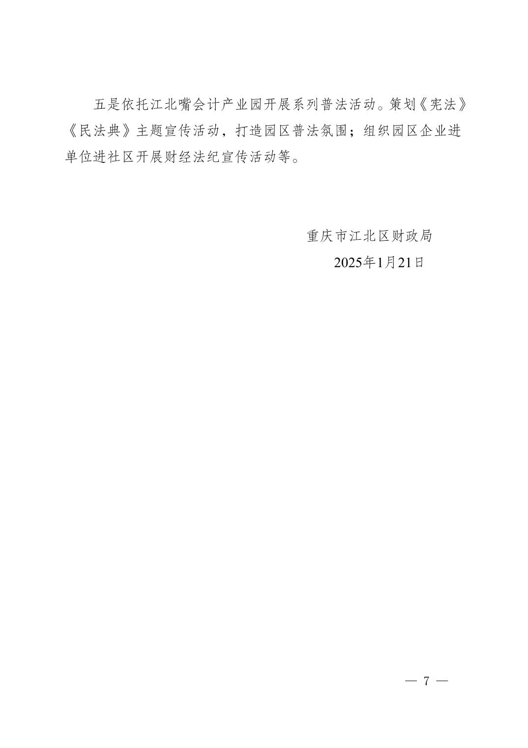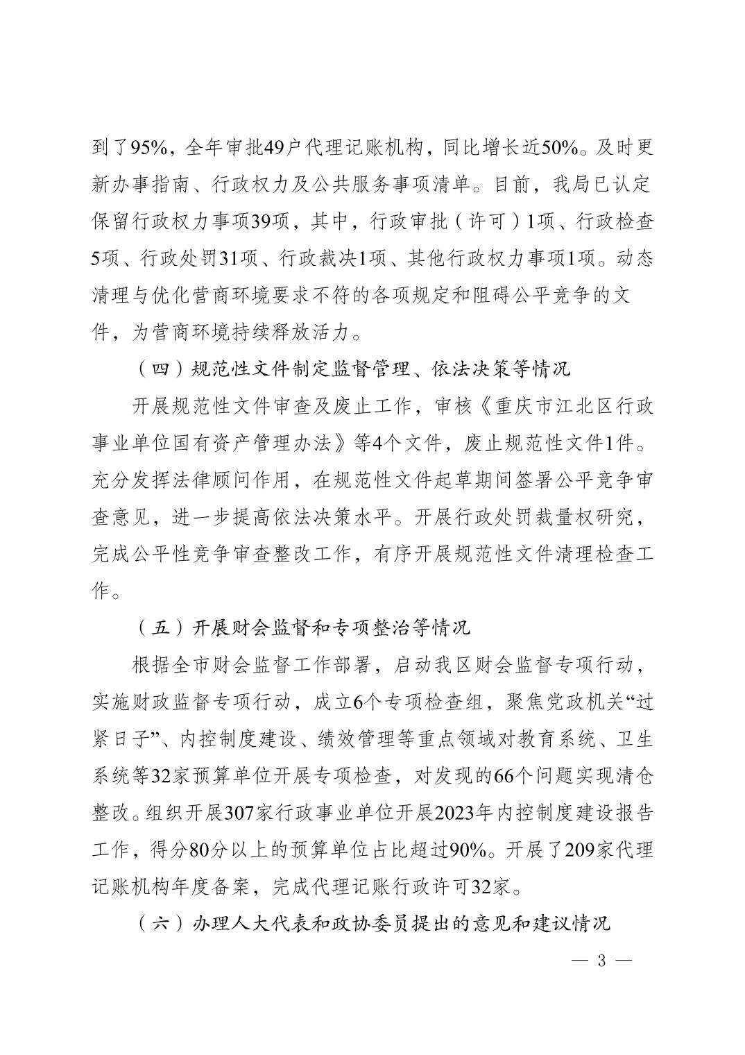 重慶市江北區財政局2024年法治政府建設情況報告
