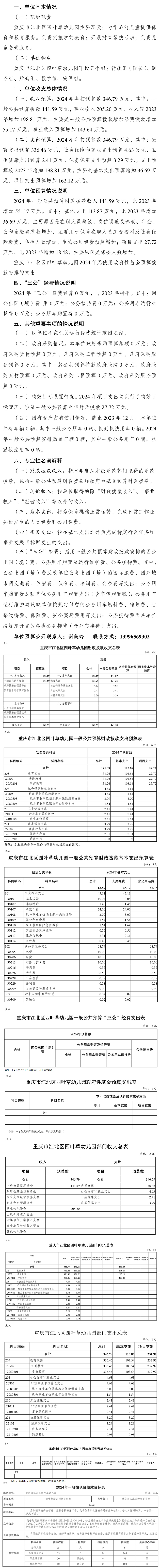 重慶市江北區四葉草幼兒園2024年單位預算情況說明