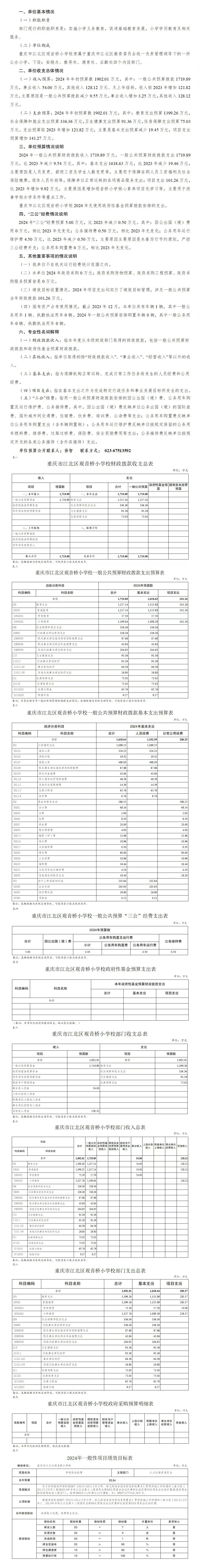 重慶市江北區(qū)觀音橋小學(xué)校2024年單位預(yù)算情況說明