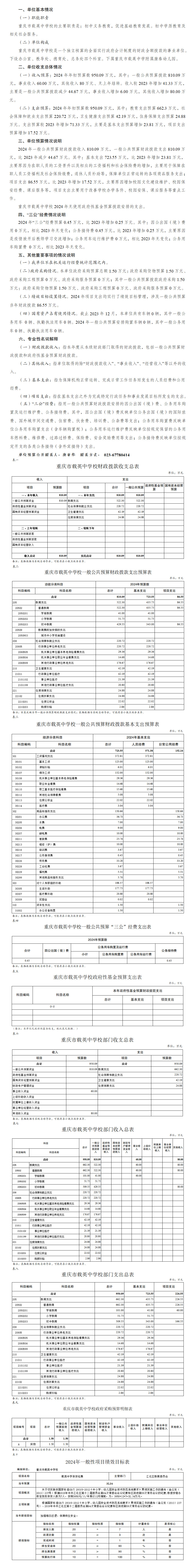 重慶市載英中學(xué)校2024年單位預(yù)算情況說明
