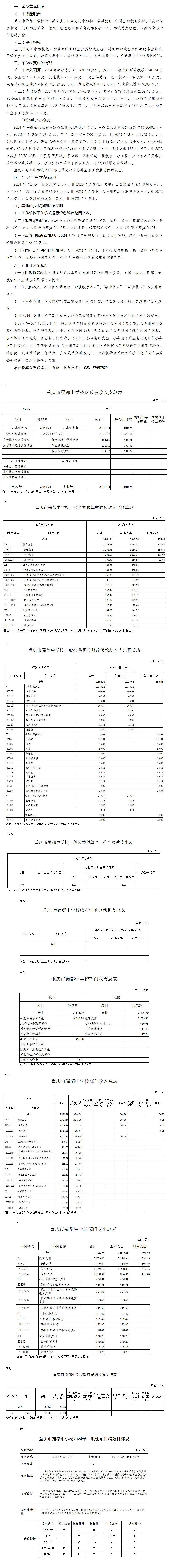 重慶市蜀都中學(xué)校2024年單位預(yù)算情況說明