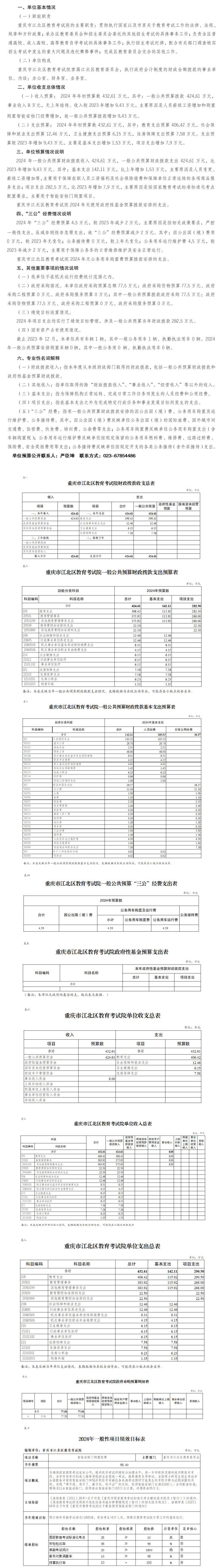 重慶市江北區(qū)教育考試院2024年單位預算情況說明