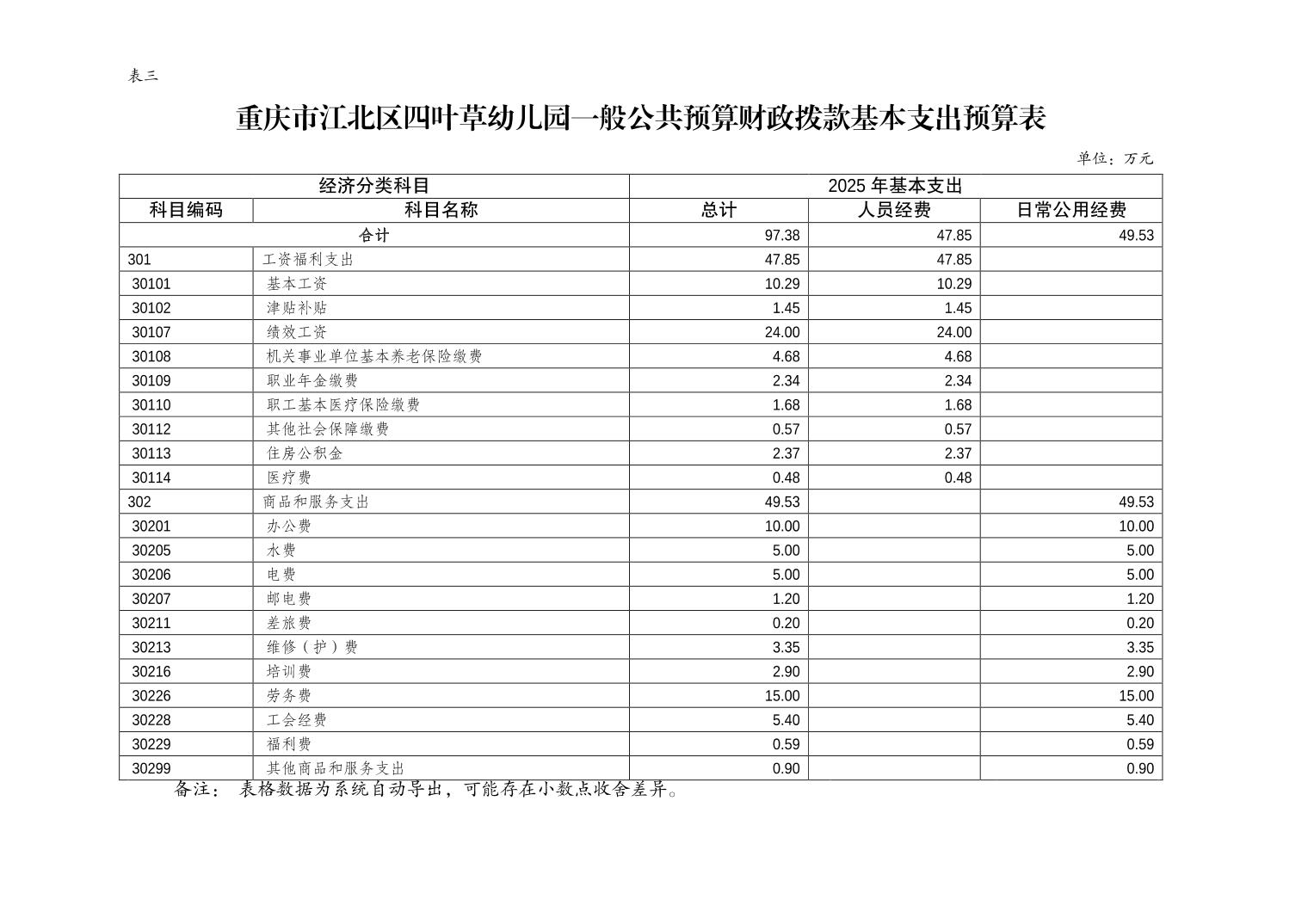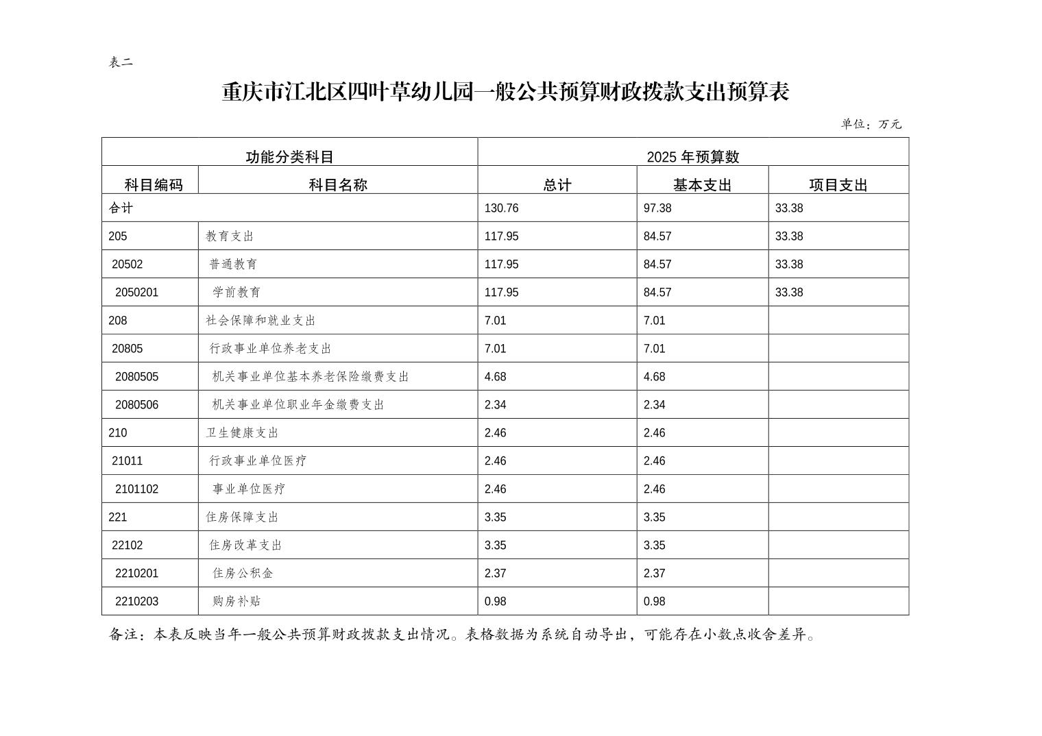 重慶市江北區(qū)四葉草幼兒園2025年單位預(yù)算情況說明
