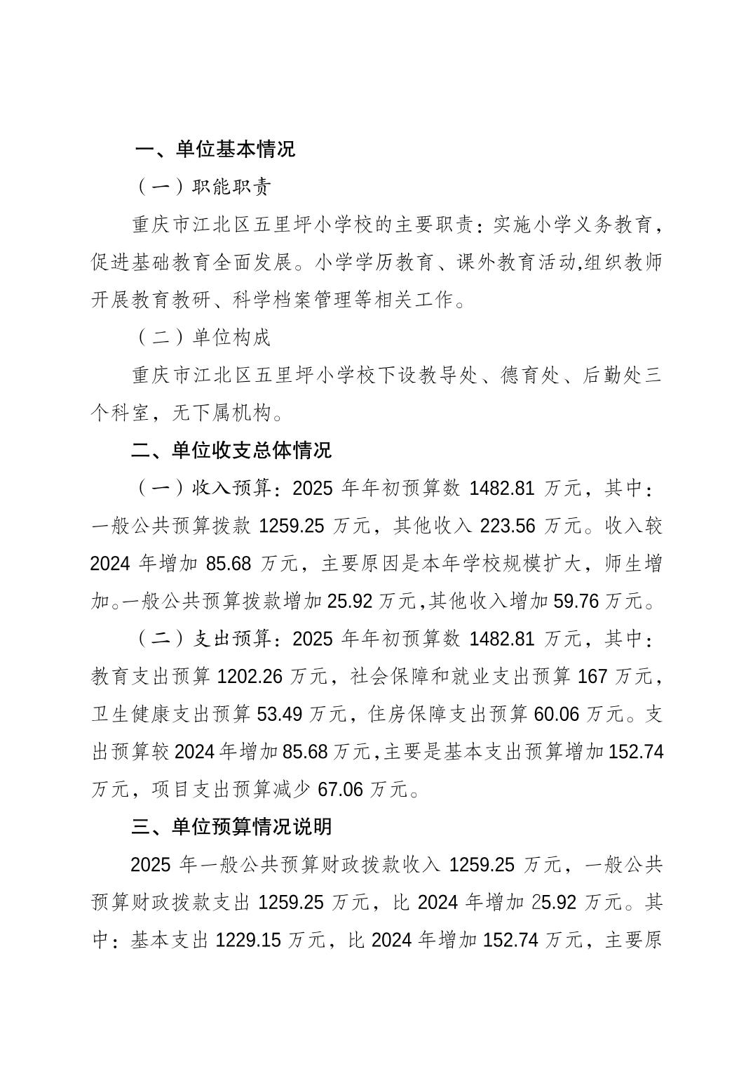 重慶市江北區(qū)五里坪小學校2025年單位預算情況說明