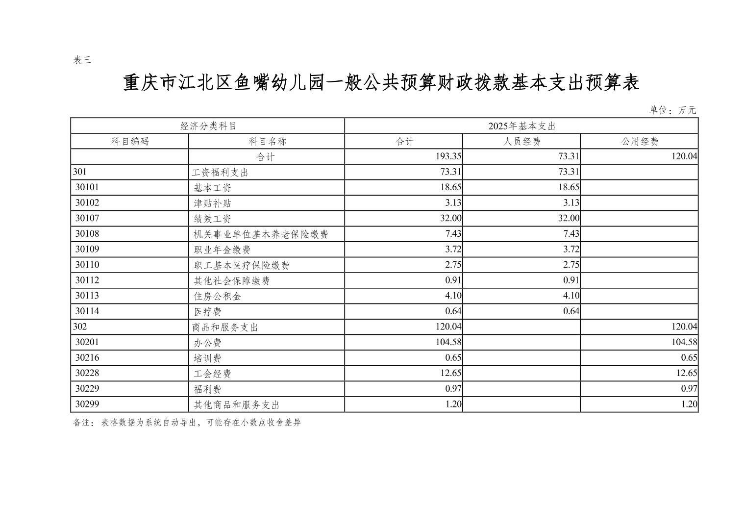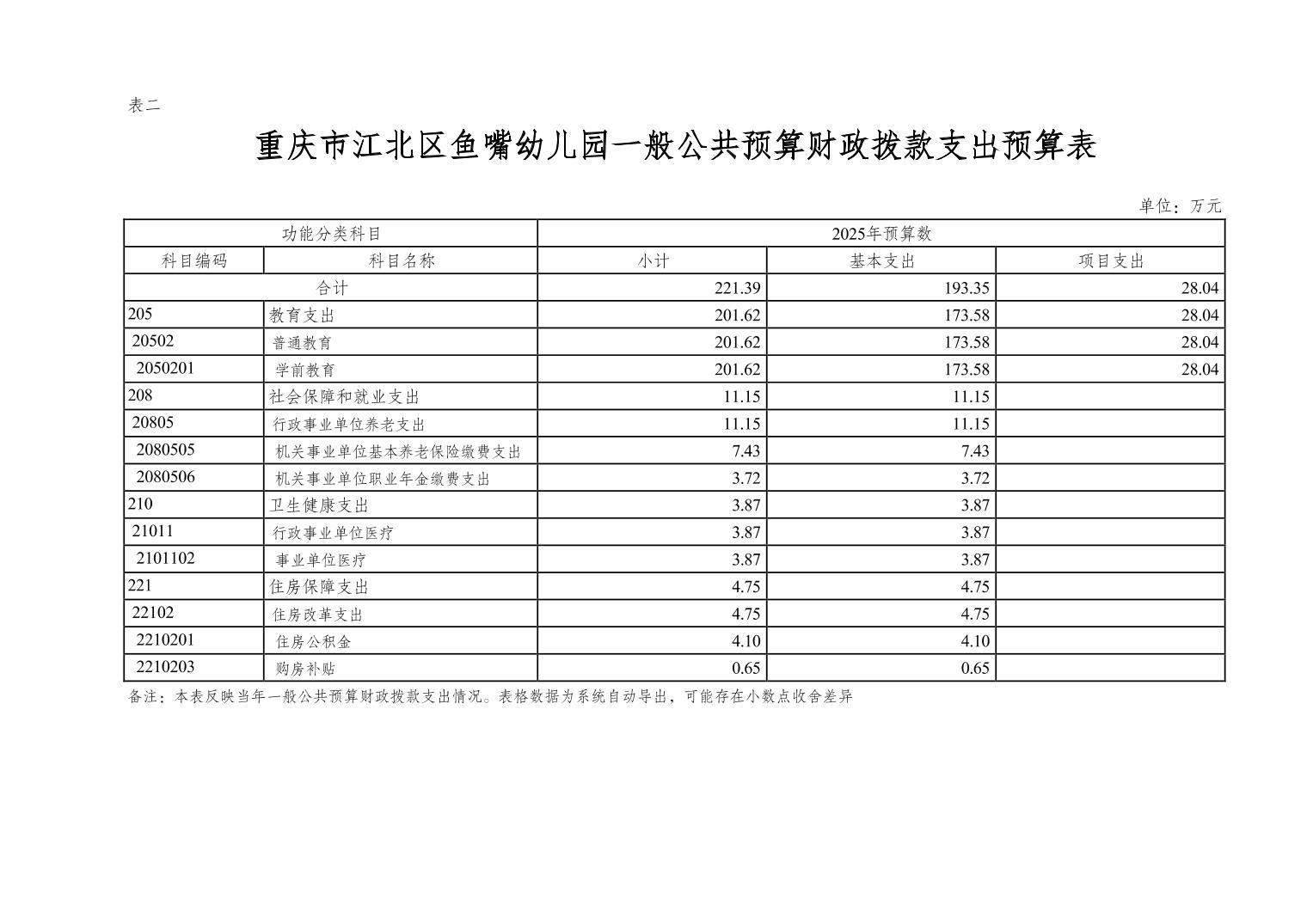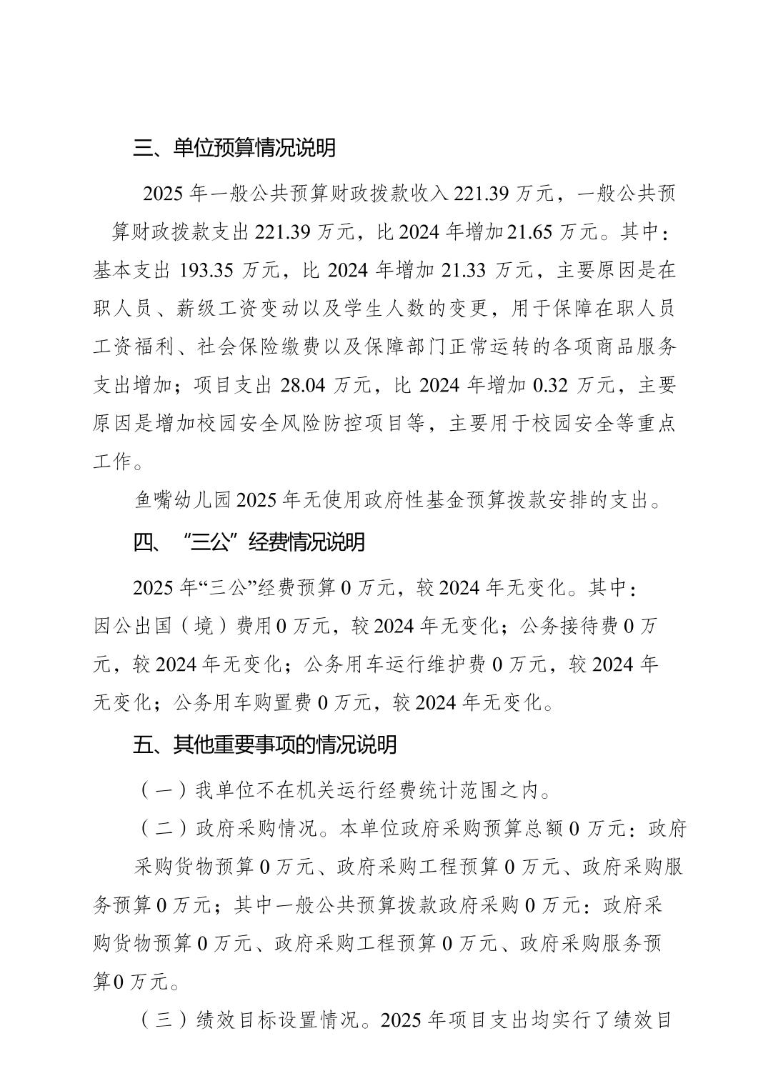 重慶市江北區魚嘴幼兒園2025年單位預算情況說明