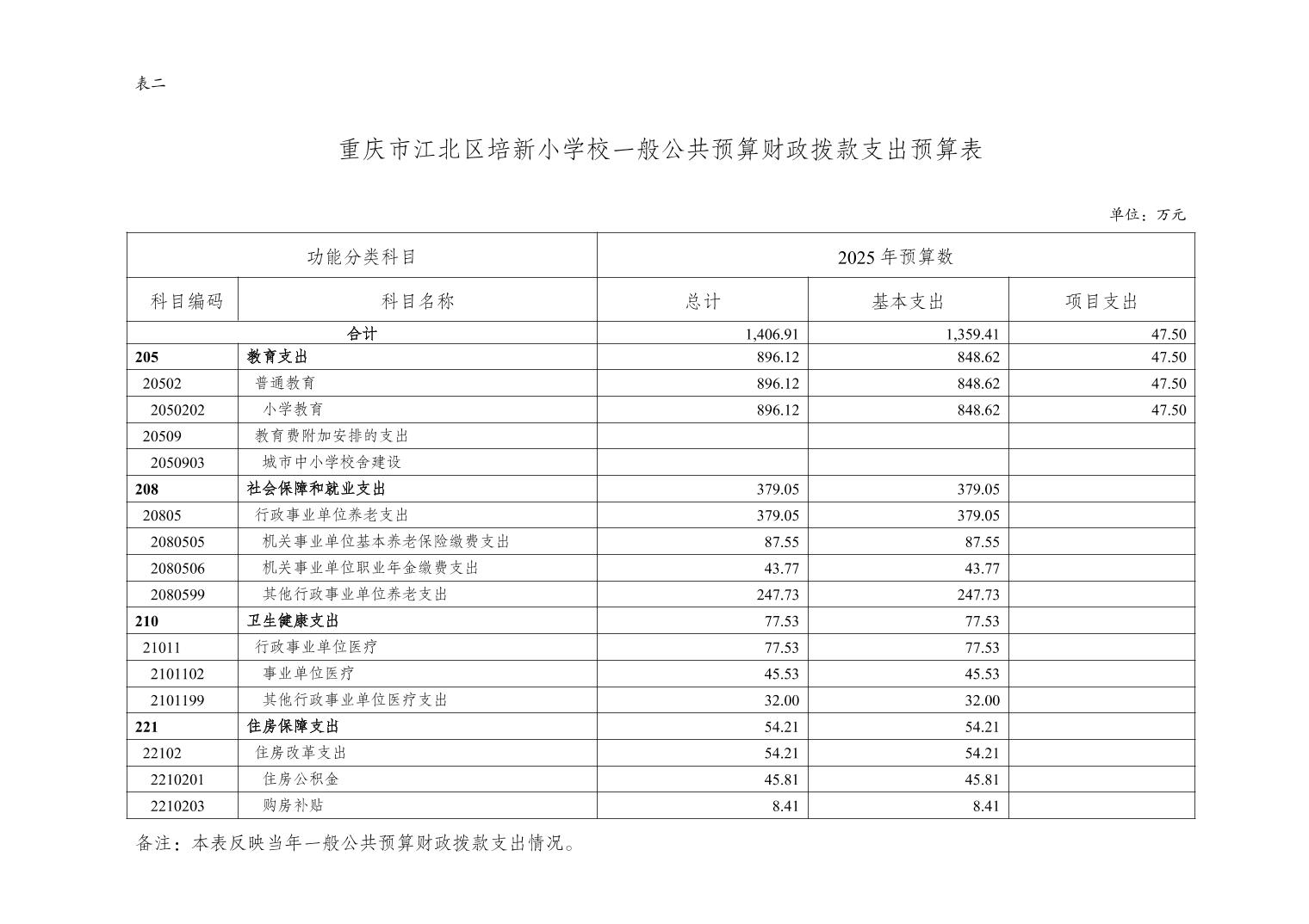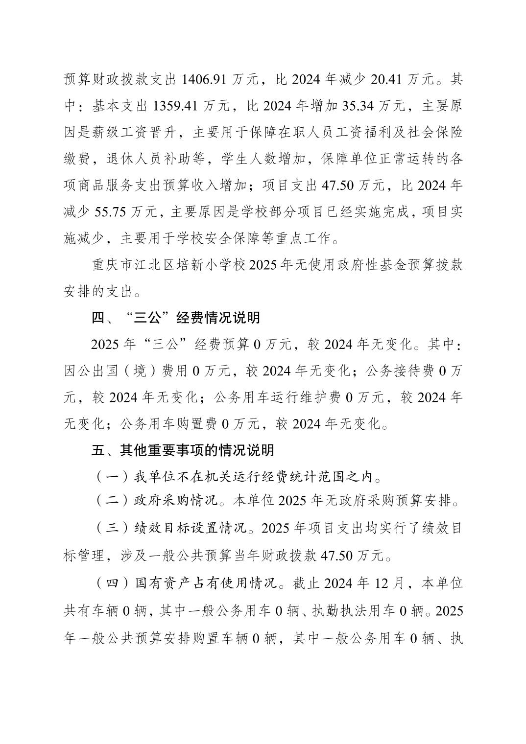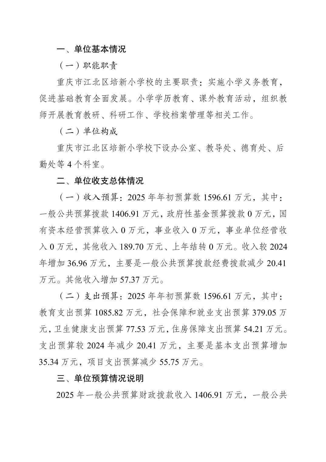 重慶市江北區培新小學校2025年單位預算情況說明