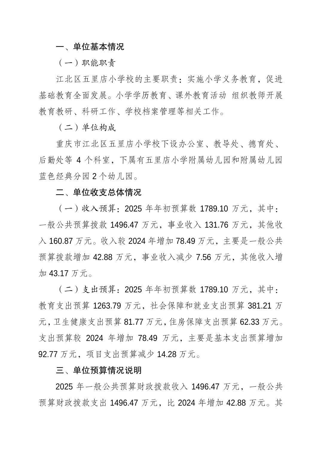 重慶市江北區(qū)五里店小學(xué)校2025年單位預(yù)算情況說明