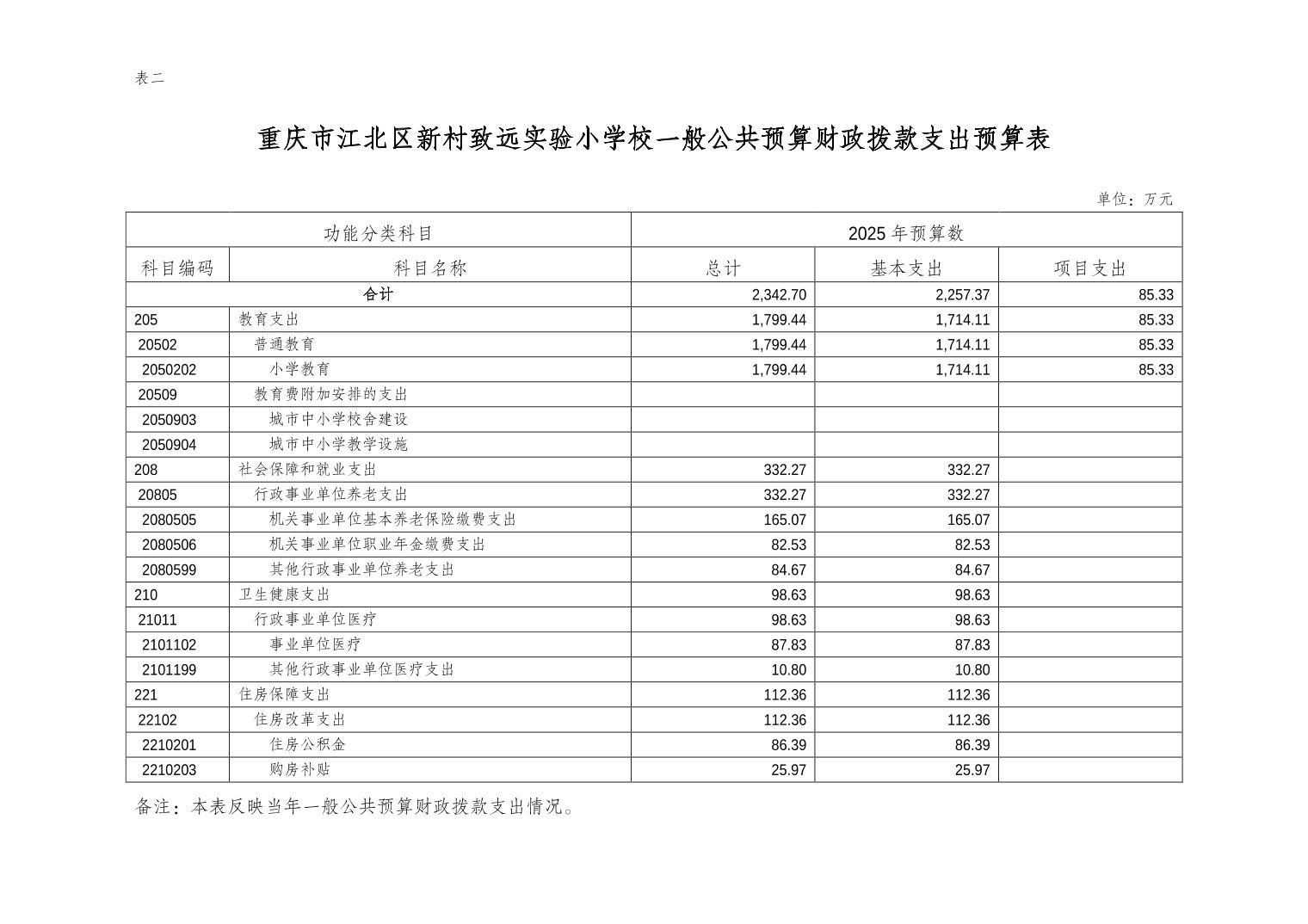 重慶市江北區新村致遠實驗小學校2025年單位預算情況說明