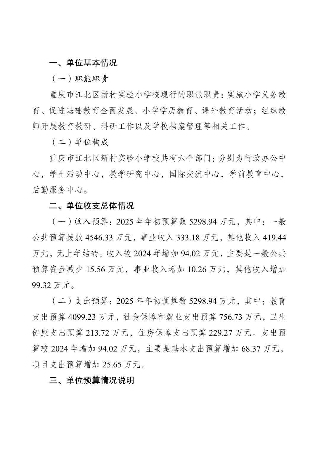 重慶市江北區(qū)新村實驗小學(xué)校2025年單位預(yù)算情況說明