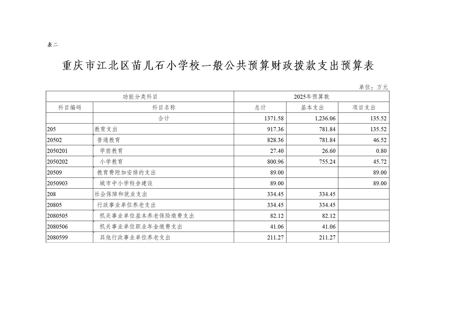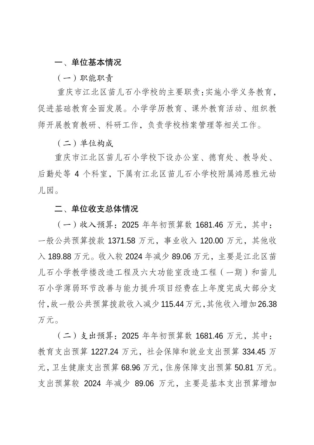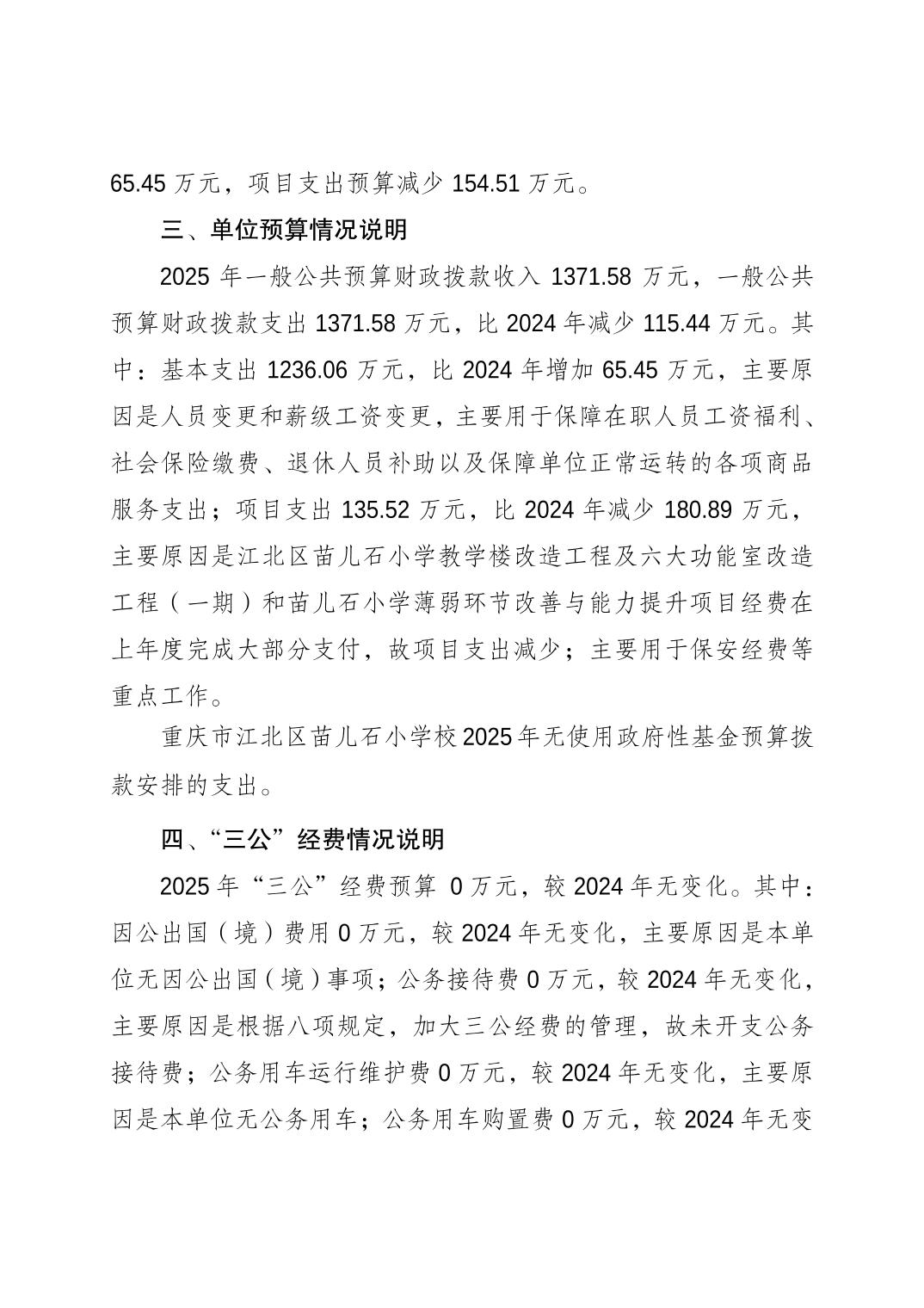重慶市江北區(qū)苗兒石小學(xué)校2025年單位預(yù)算情況說明