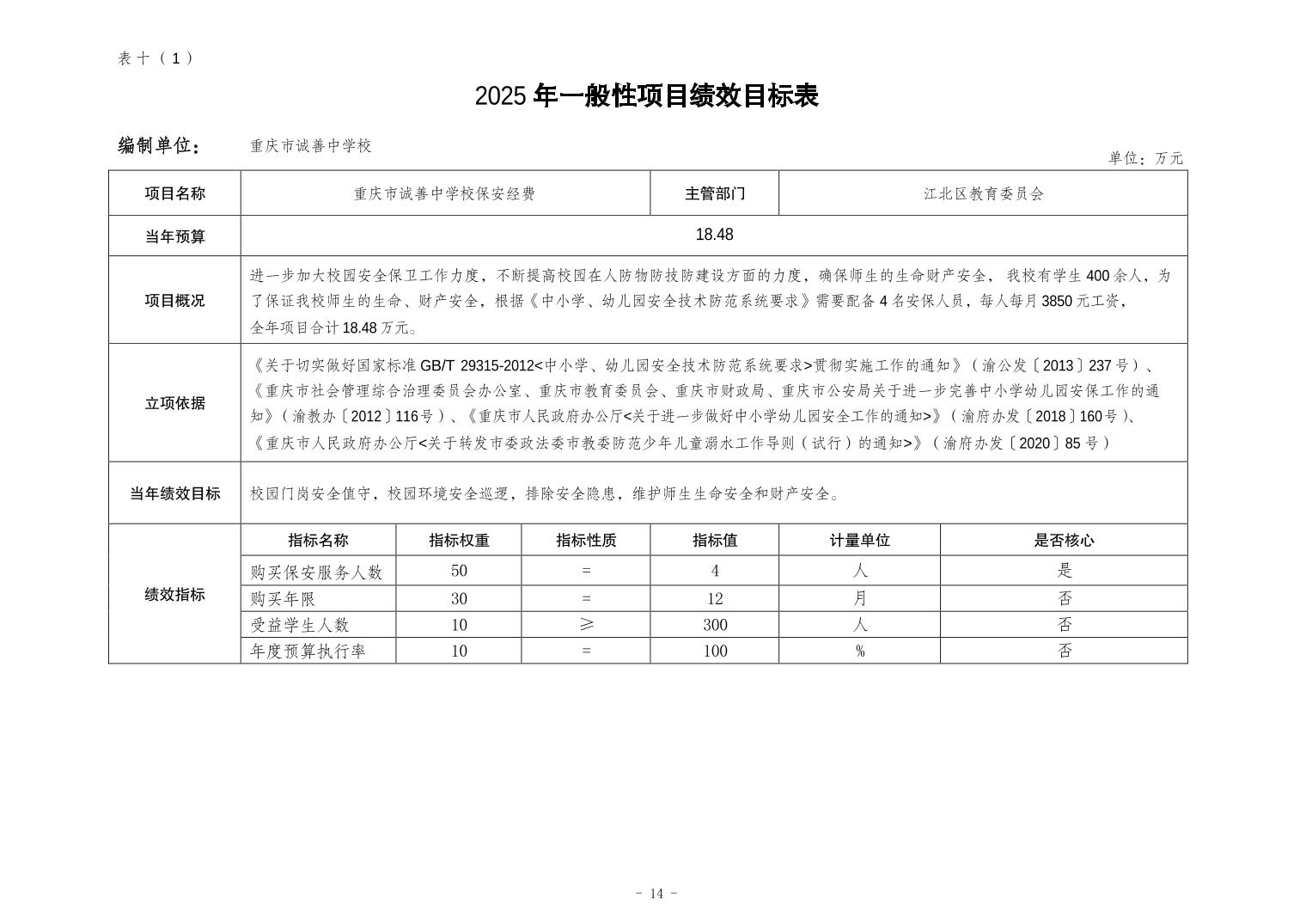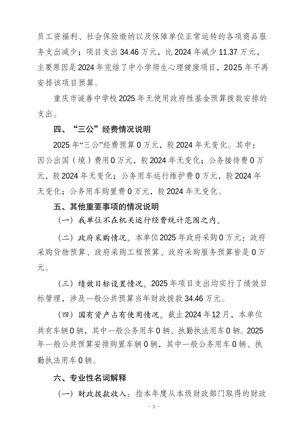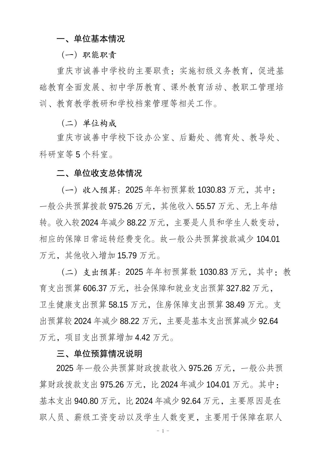 重慶市誠(chéng)善中學(xué)校2025年單位預(yù)算情況說(shuō)明