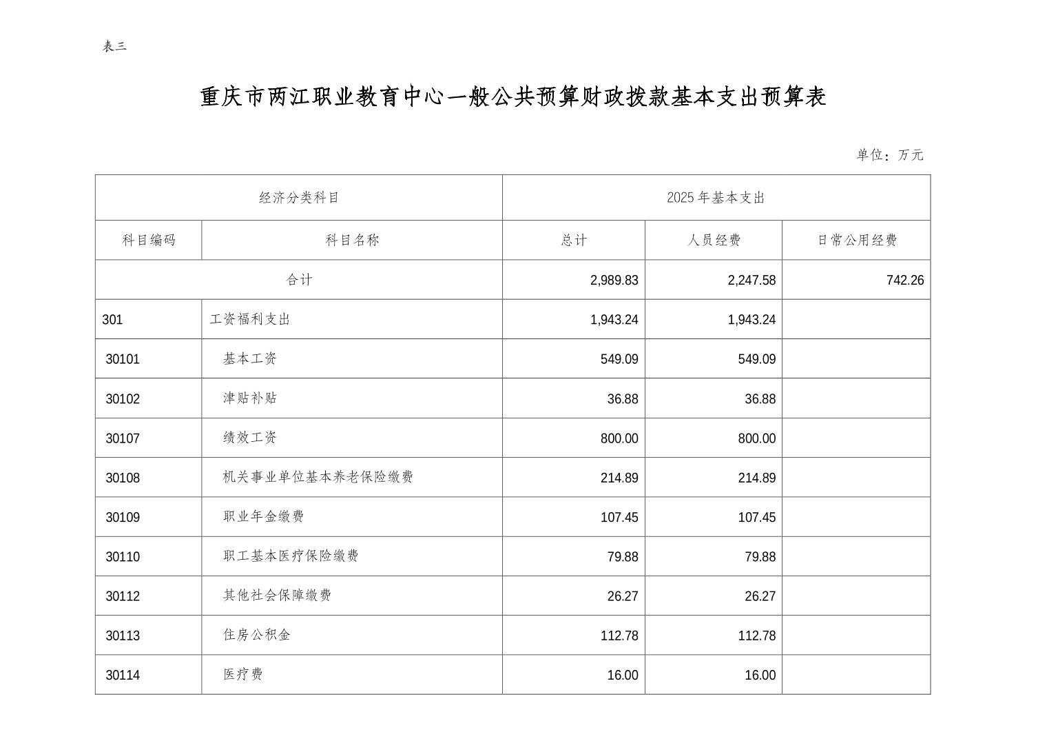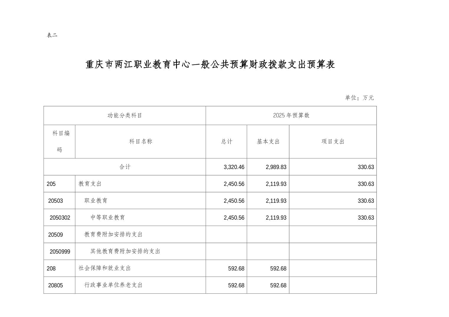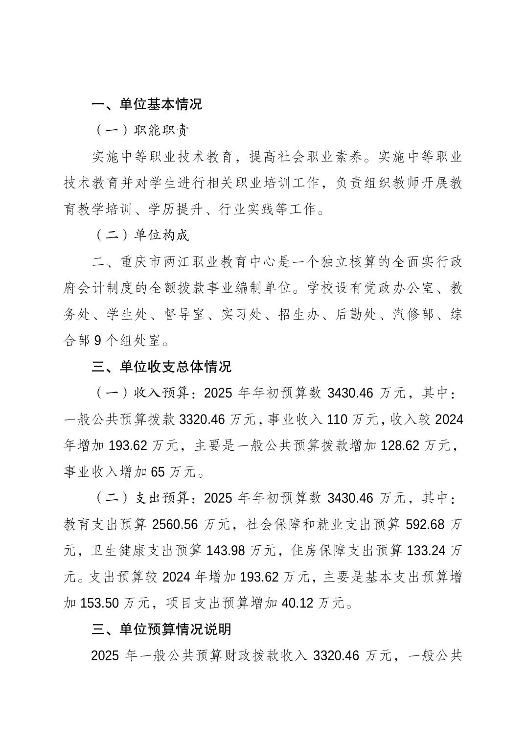重慶市兩江職業教育中心2025年單位預算情況說明