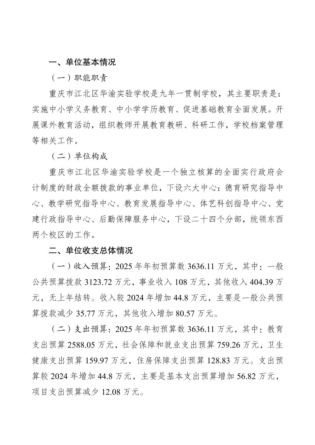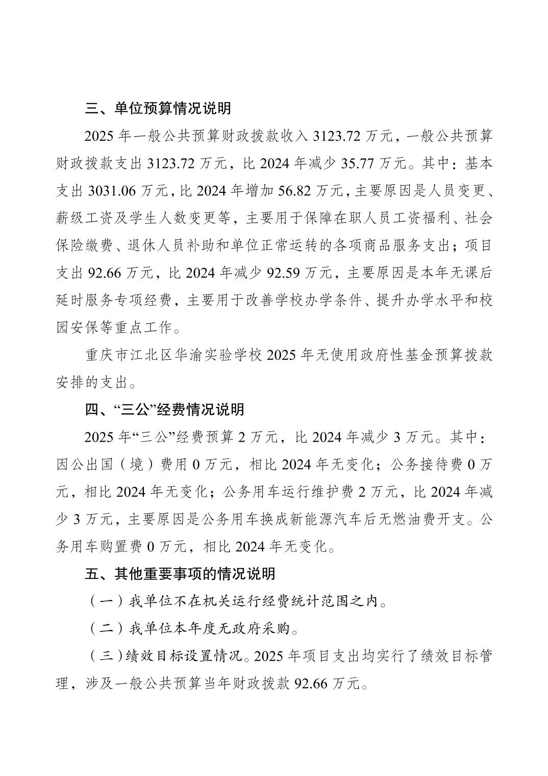 重慶市江北區華渝實驗學校2025年單位預算情況說明