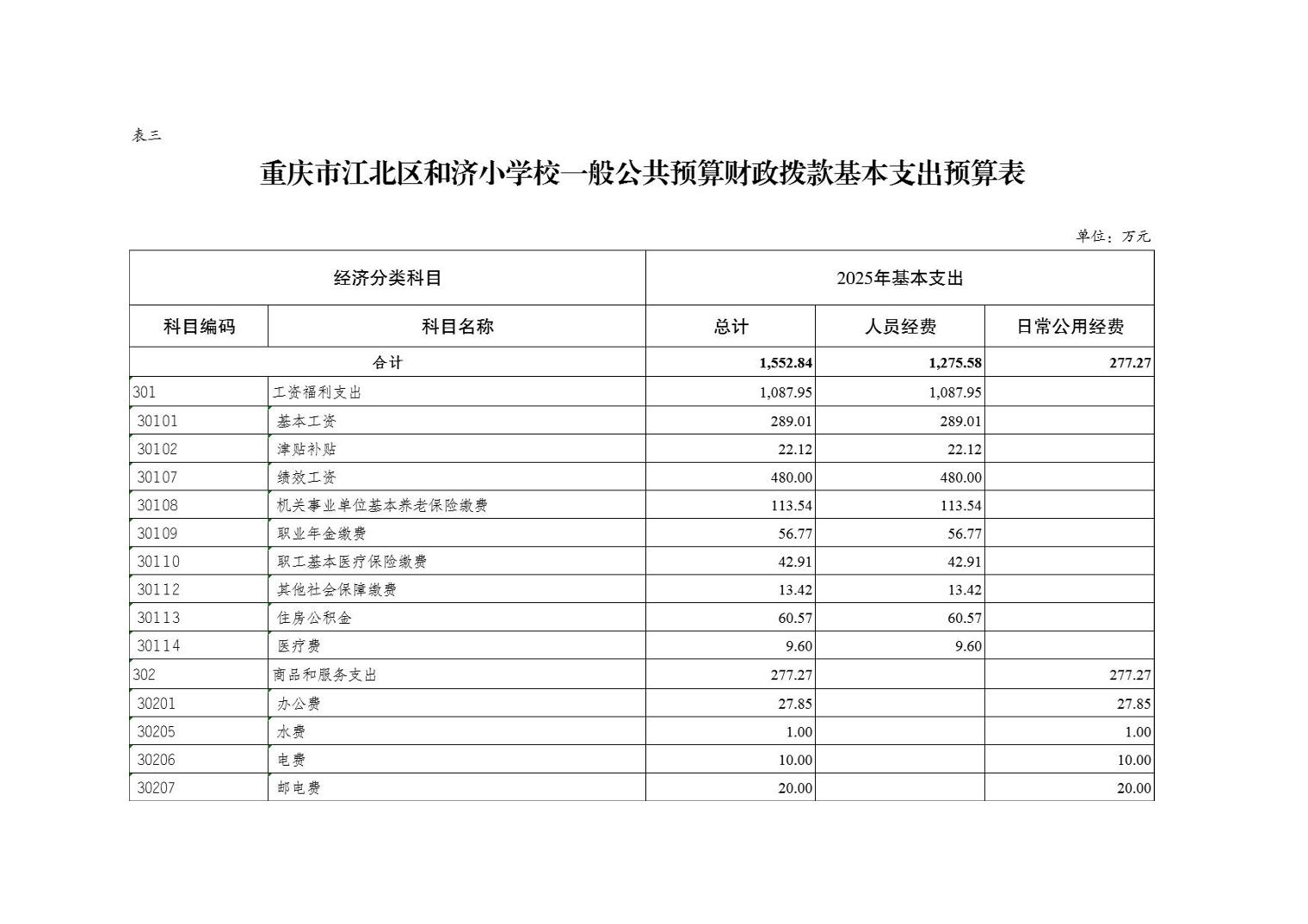 重慶市江北區和濟小學校2025年單位預算情況說明