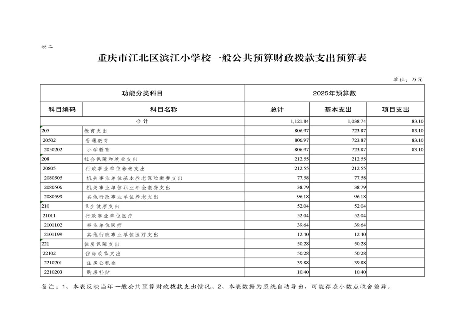 重慶市江北區濱江小學校2025年部門預算情況說明