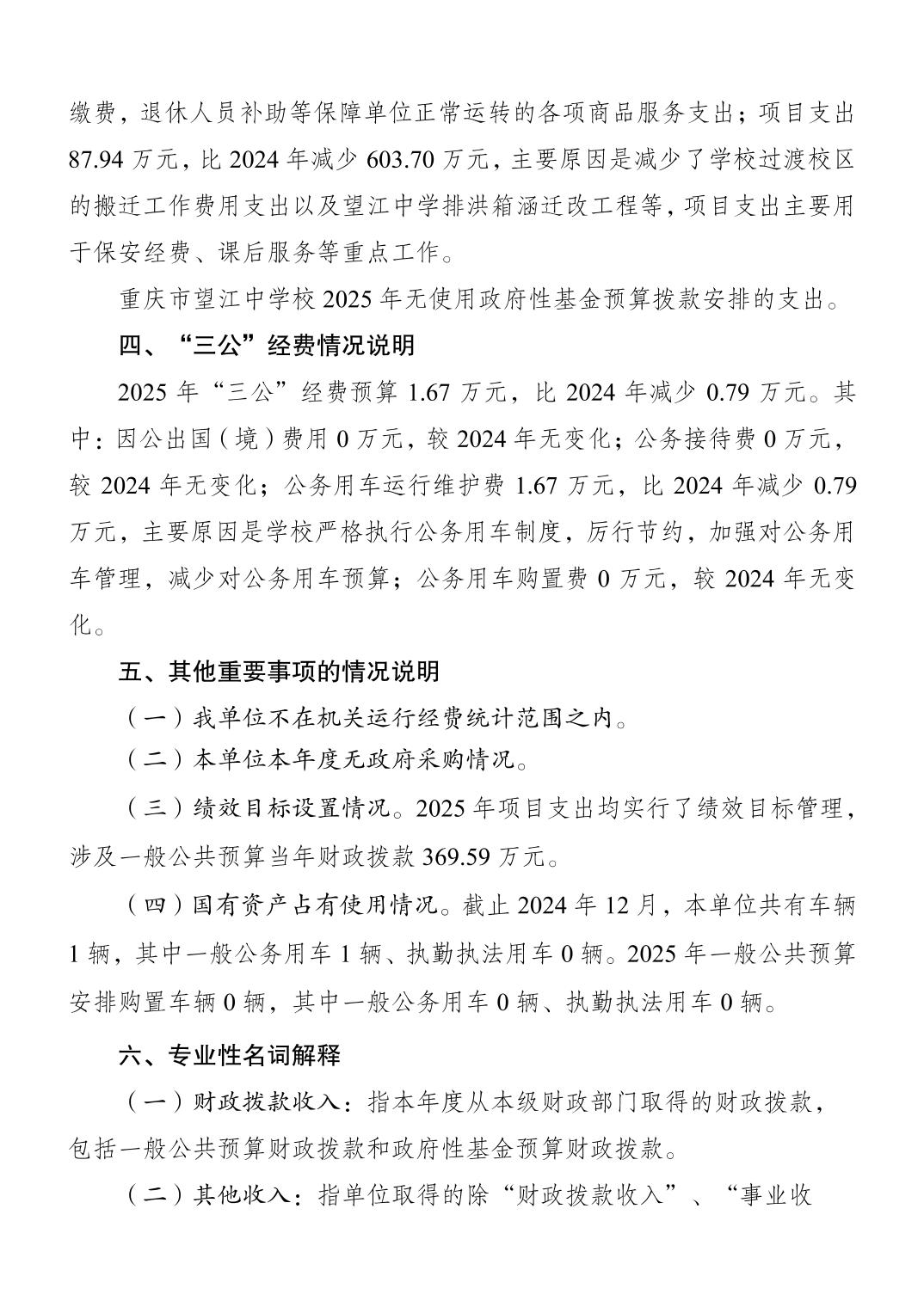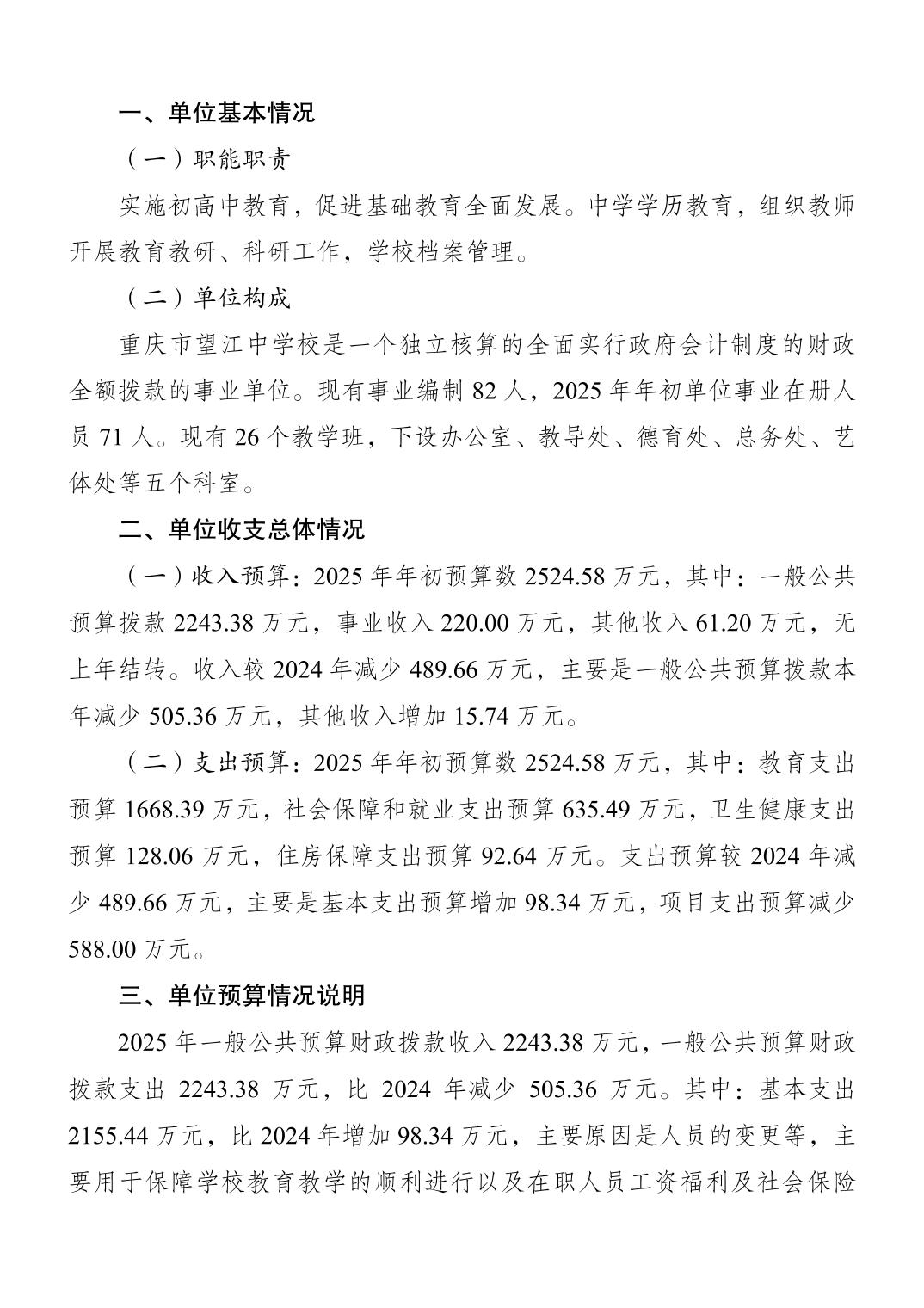 重慶市望江中學(xué)2025年單位預(yù)算情況說(shuō)明