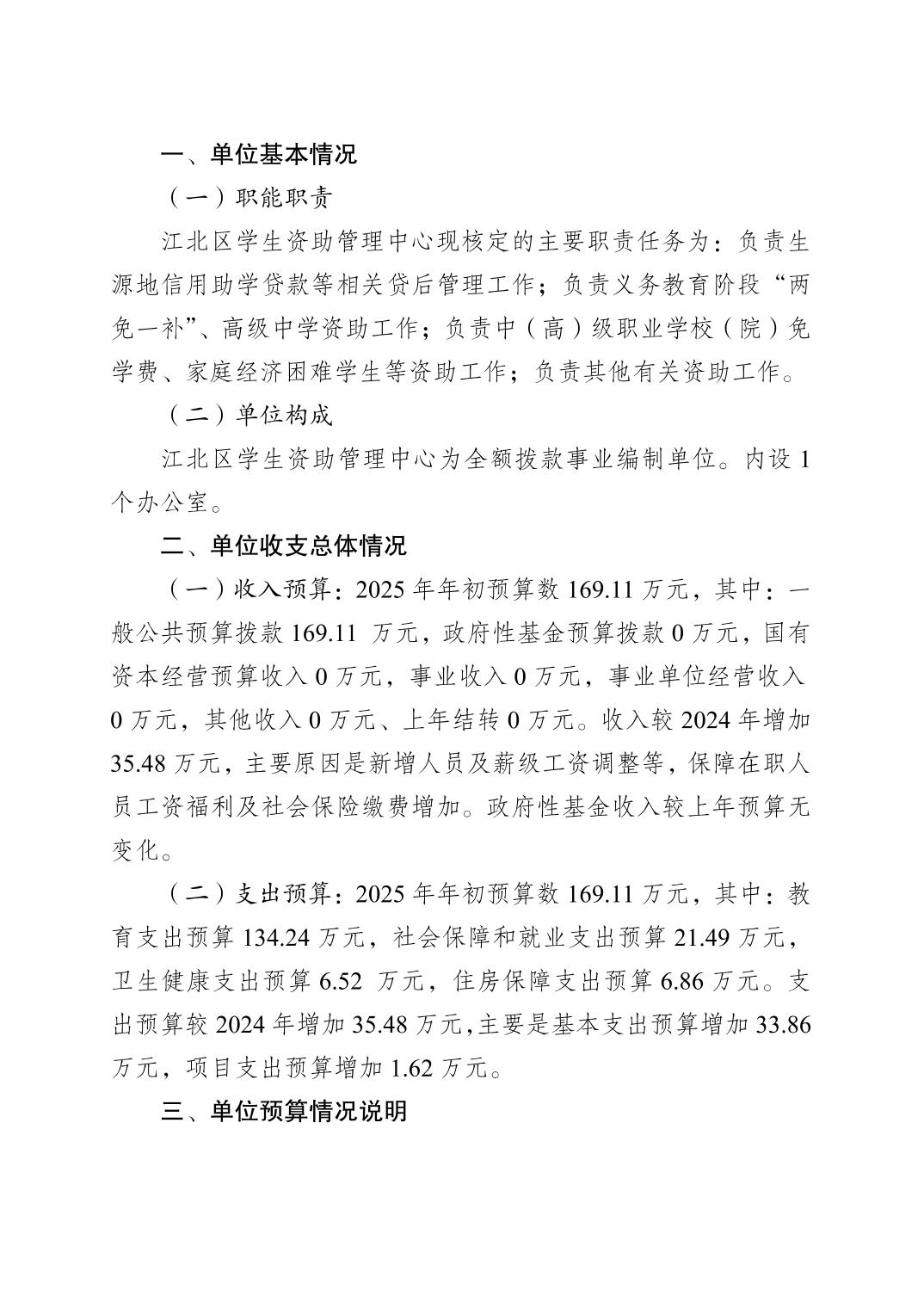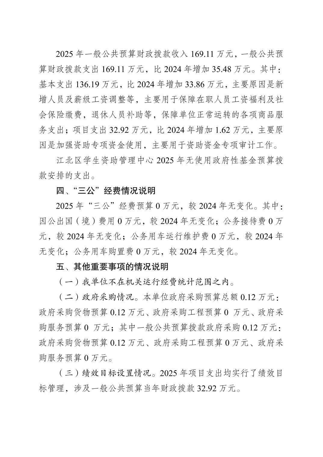 重慶市江北區(qū)學(xué)生資助管理中心2025年單位預(yù)算情況說明