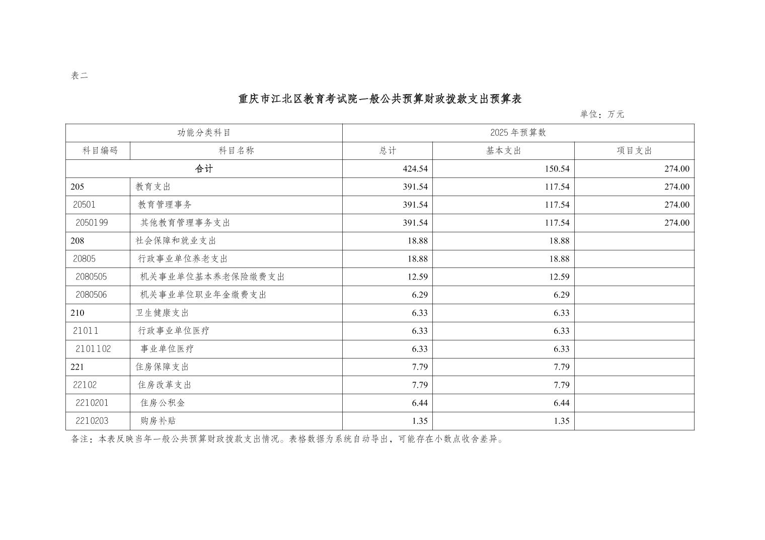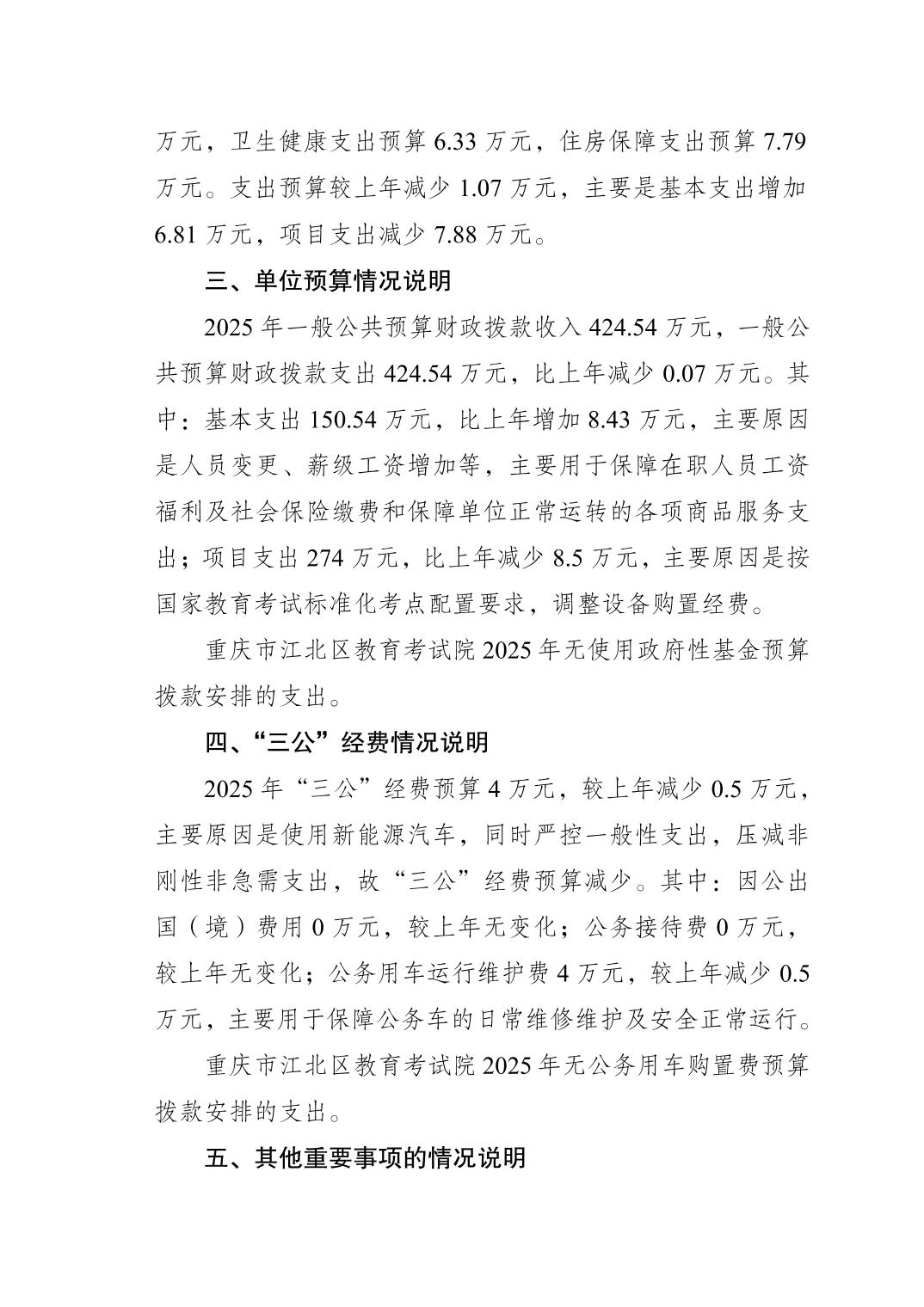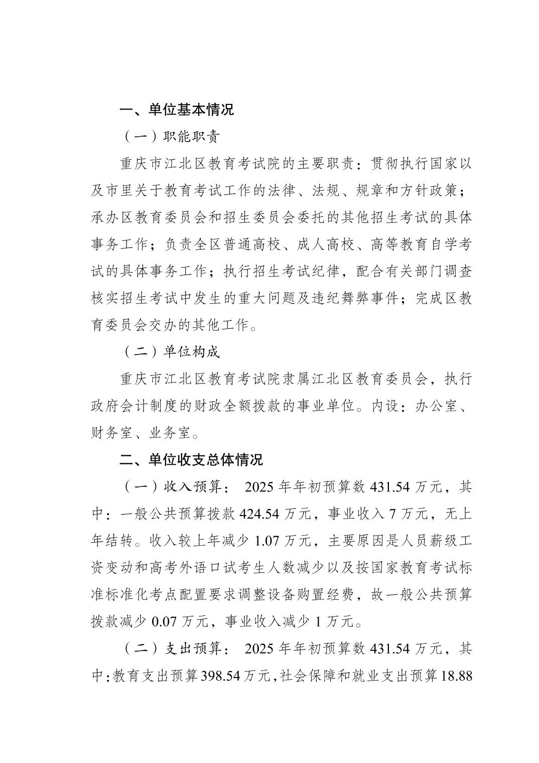 重慶市江北區教育考試院2025年單位預算情況說明