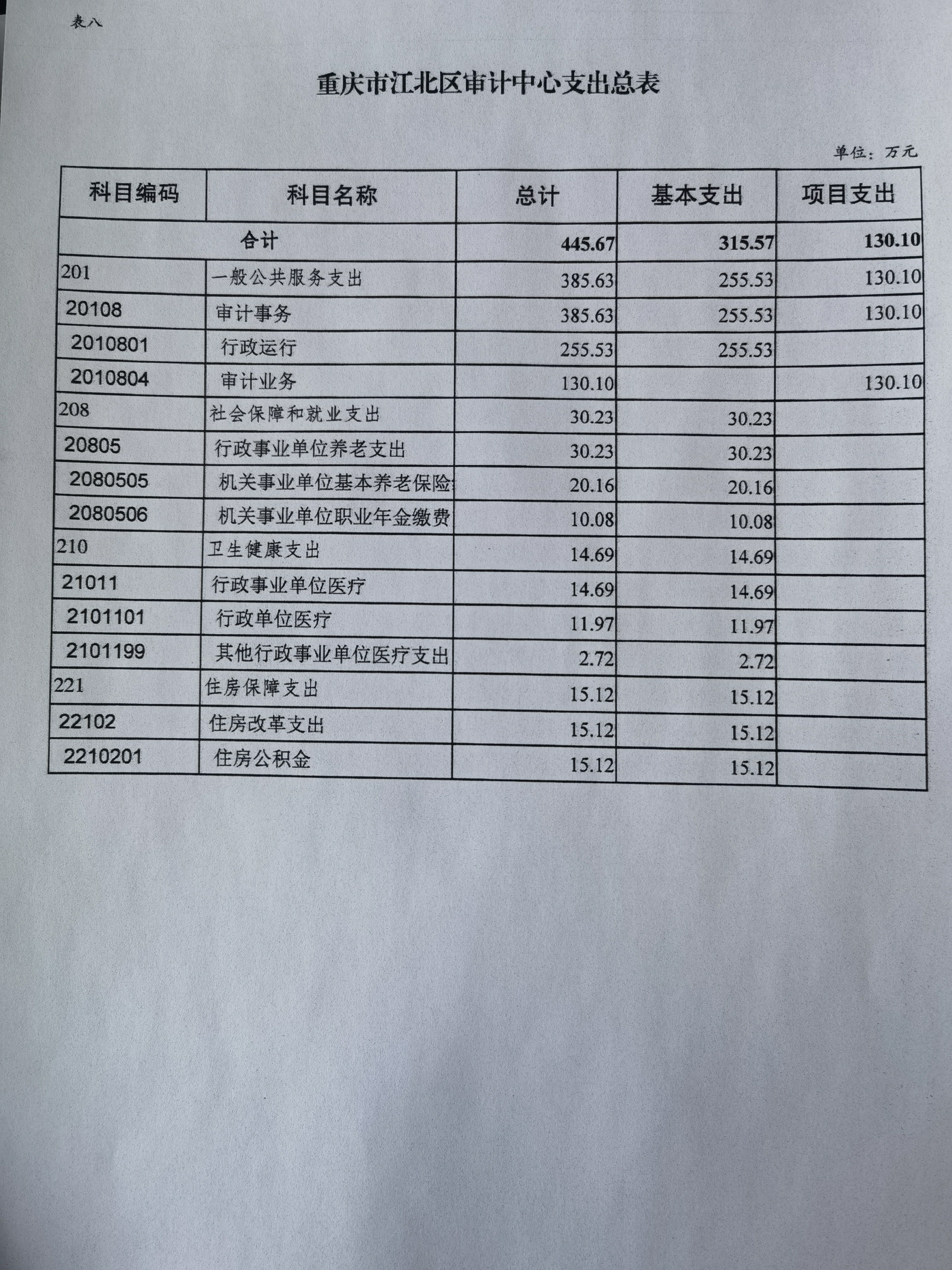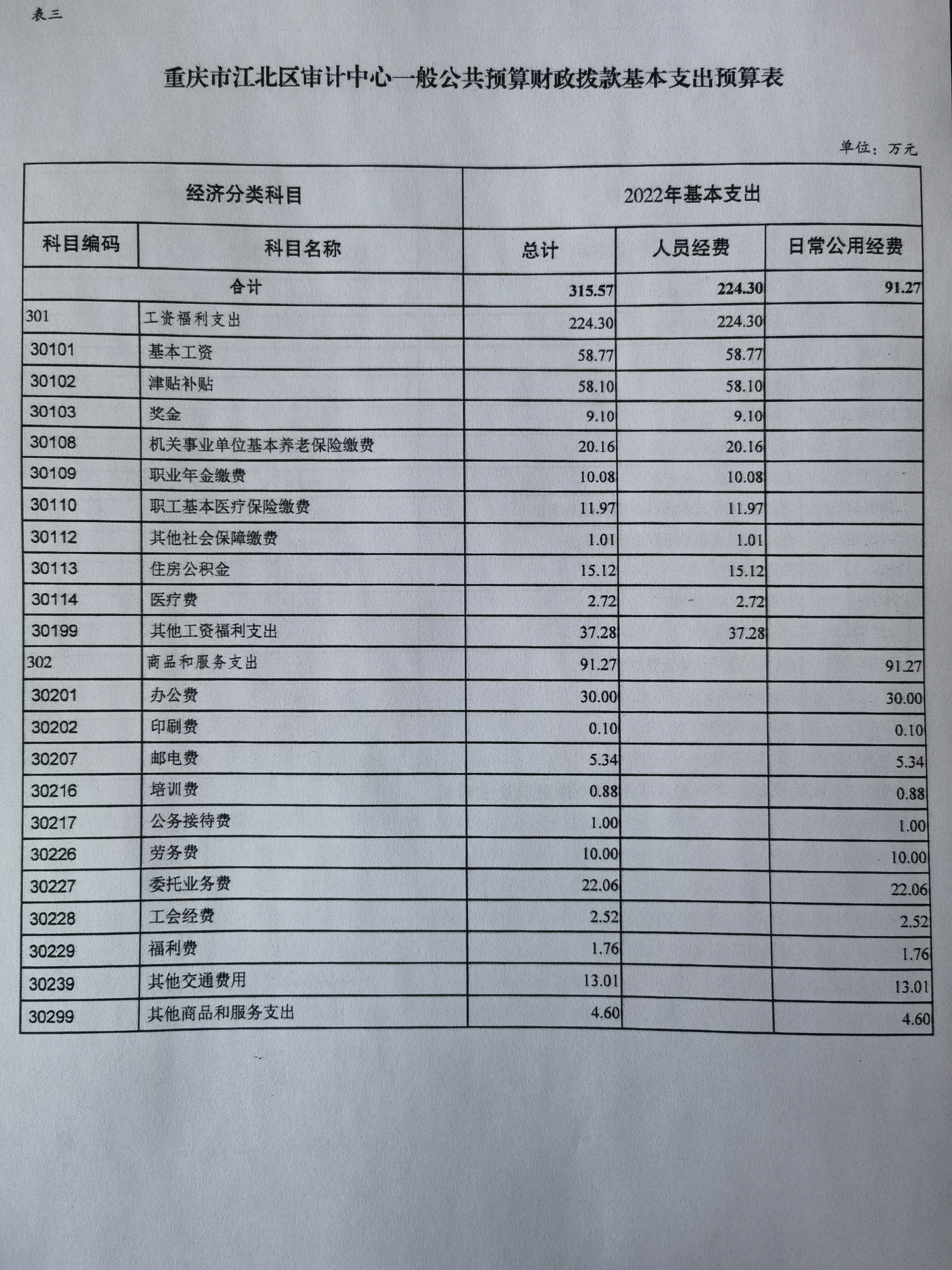重慶市江北區審計中心2022年單位預算情況說明