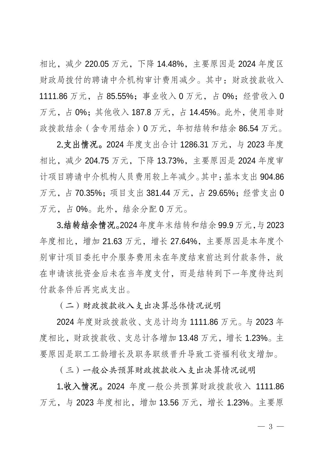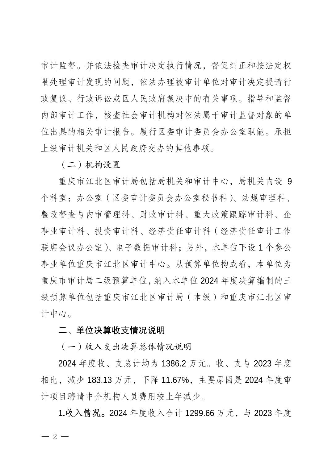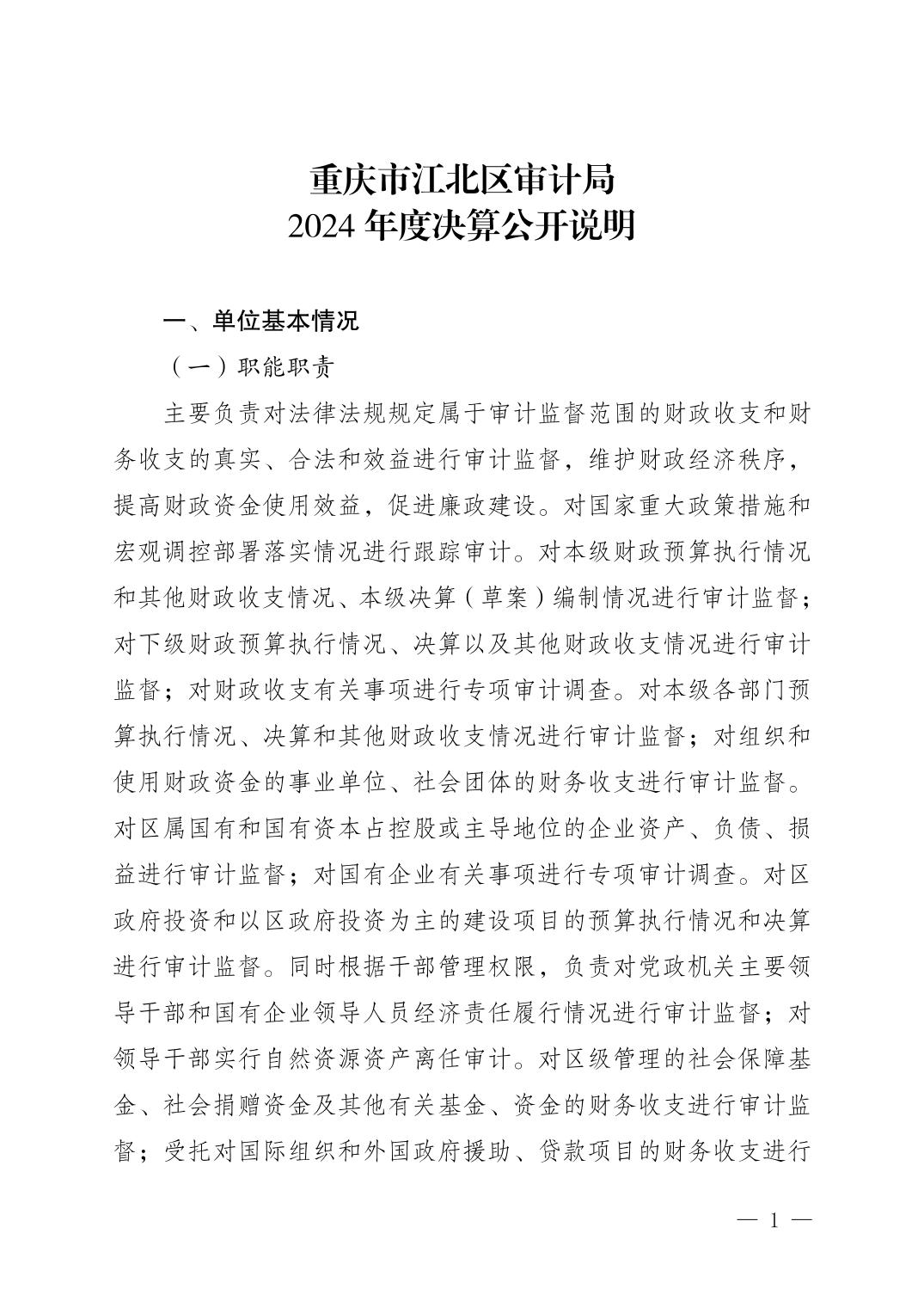 重慶市江北區(qū)審計局2024年度決算公開說明