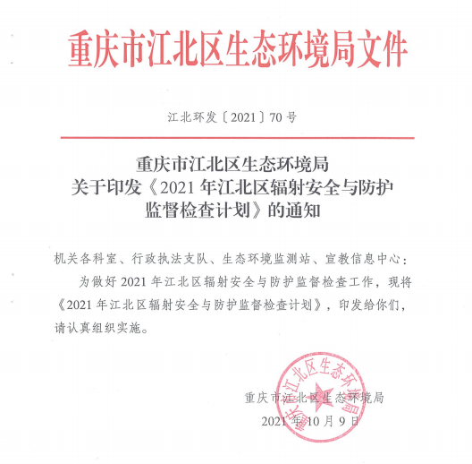 2021年江北區(qū)輻射安全與防護(hù)監(jiān)督檢查計(jì)劃通知