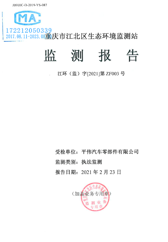 江環(huán)(監(jiān))字[2021]第ZF003號(hào)(氣)重慶平偉汽車零部件有限公司