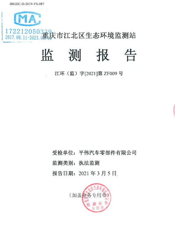 江環(監)字[2021]第ZF009號(氣)重慶平偉汽車零部件有限公司