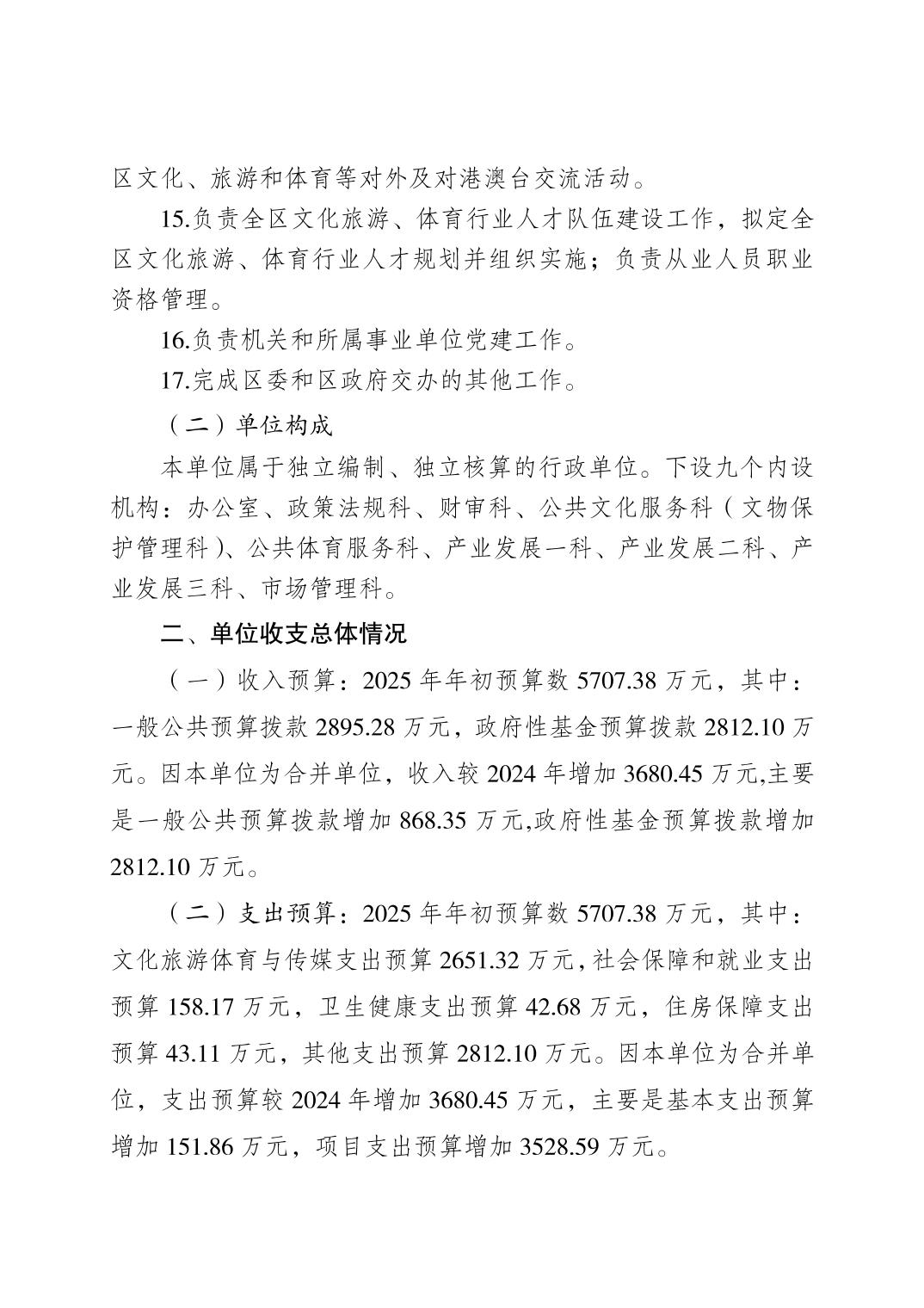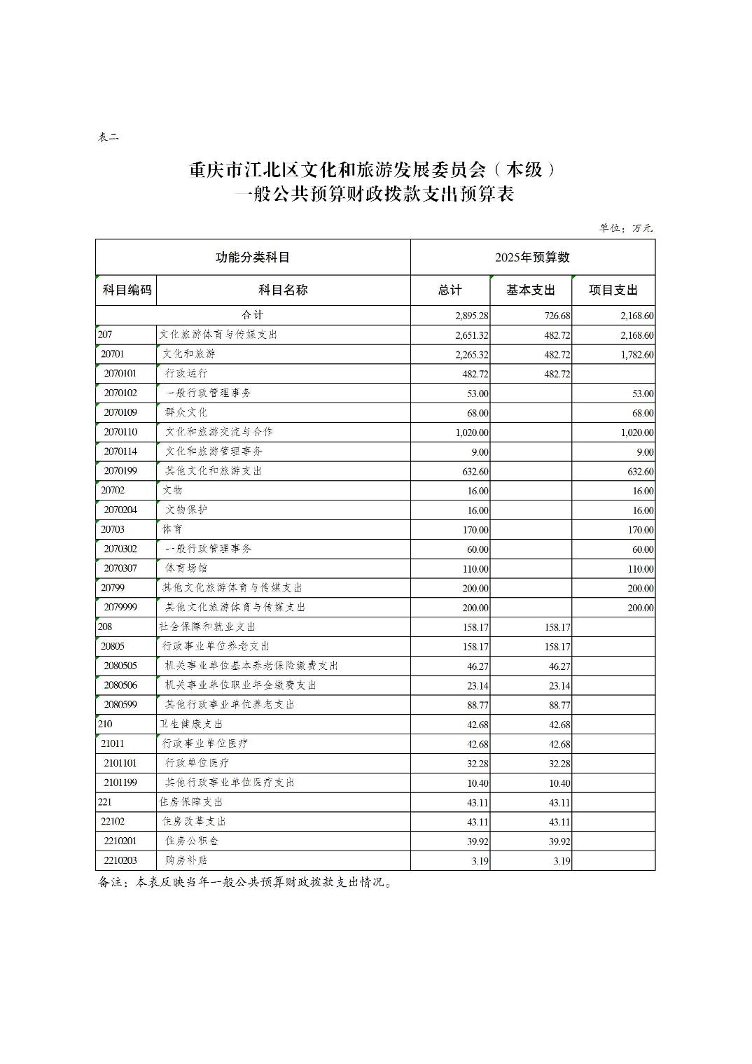 重慶市江北區文化和旅游發展委員會(本級)2025年單位預算情況說明
