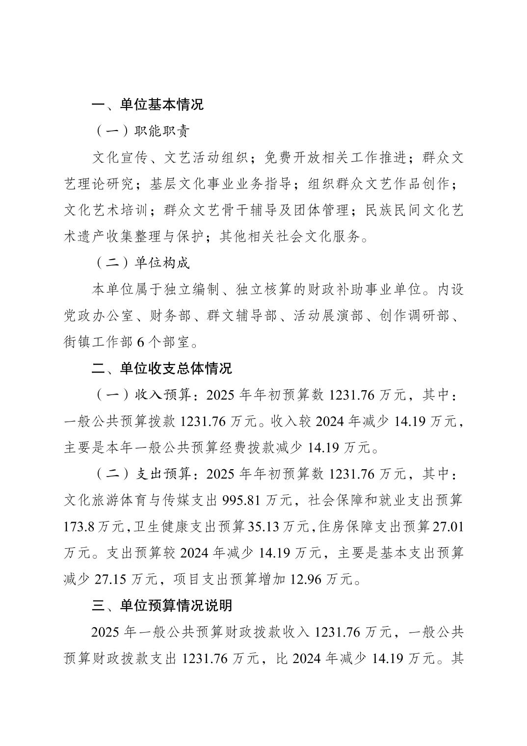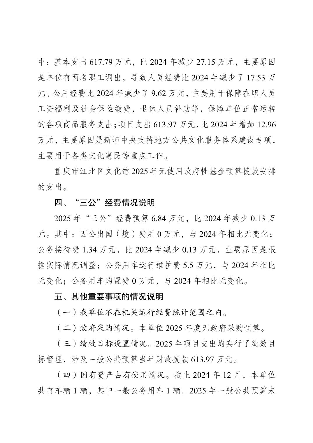 重慶市江北區文化館2025年單位預算情況說明