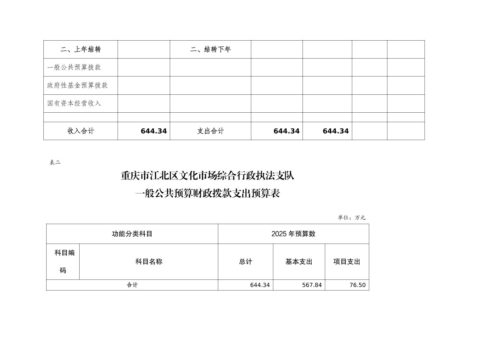 重慶市江北區(qū)文化市場(chǎng)綜合行政執(zhí)法支隊(duì)2025年單位預(yù)算情況說明