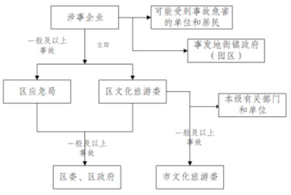 (3)及時向區政府、市文化旅游委報告本單位管理范圍內發生的突發事件(故),配合區政府、市文化旅游委在本單位管理范圍內發生的較大、重大、特別重大突發事件(故)的處置工作;