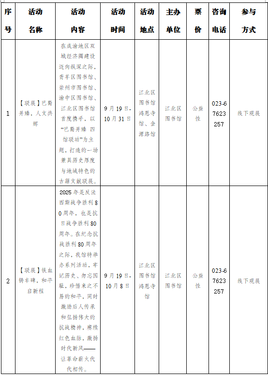 重慶市江北區2025年10月1日-10月31日主要群文活動預告