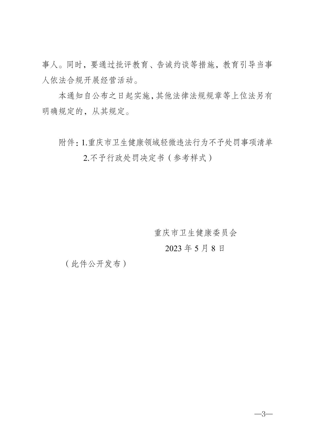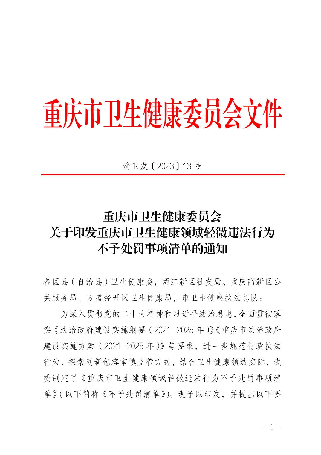 重慶市衛生健康委員會關于印發重慶市衛生健康領域輕微違法行為不予處罰事項清單的通知