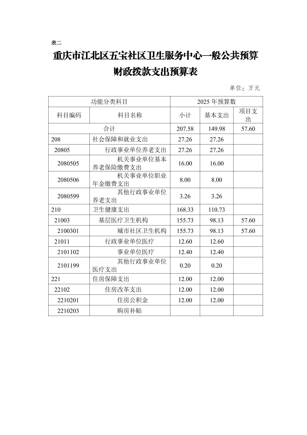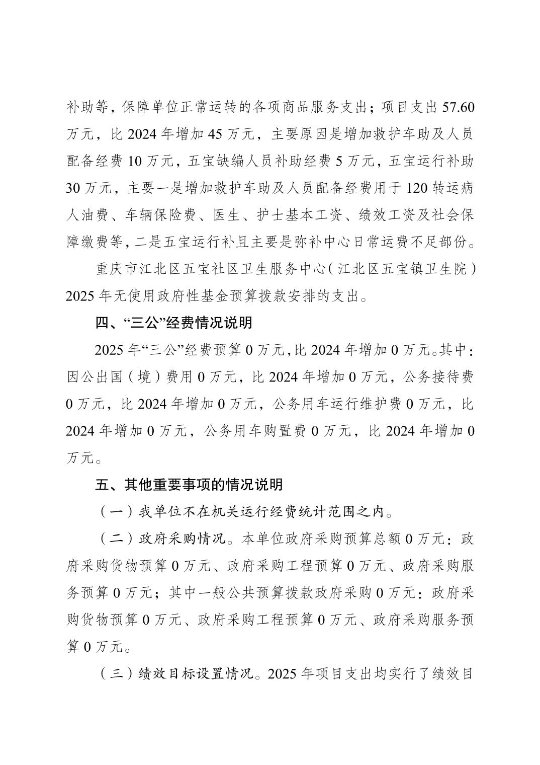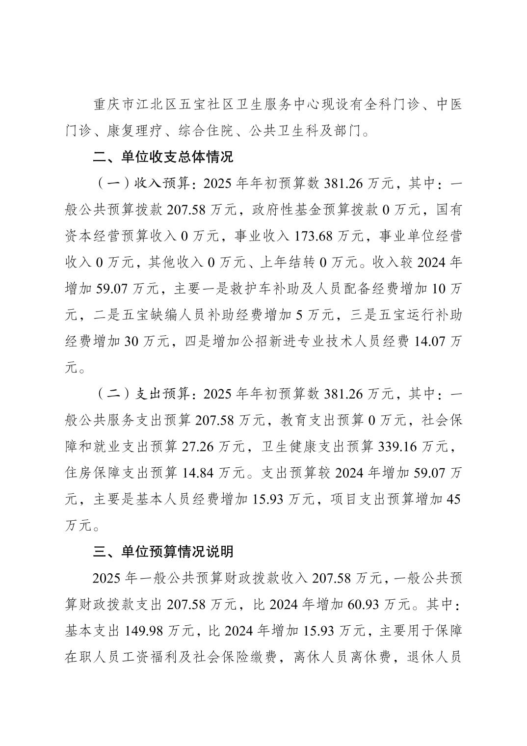 重慶市江北區(qū)五寶社區(qū)衛(wèi)生服務(wù)中心(江北區(qū)五寶鎮(zhèn)衛(wèi)生院)2025年單位預(yù)算情況說(shuō)明