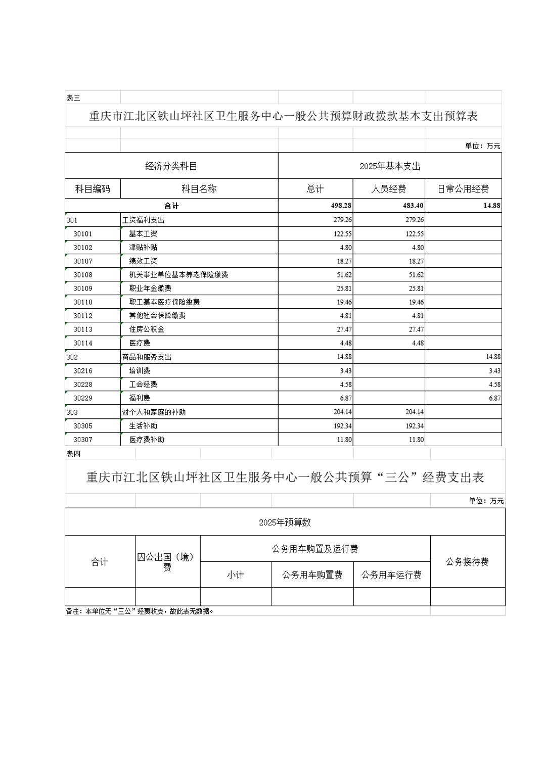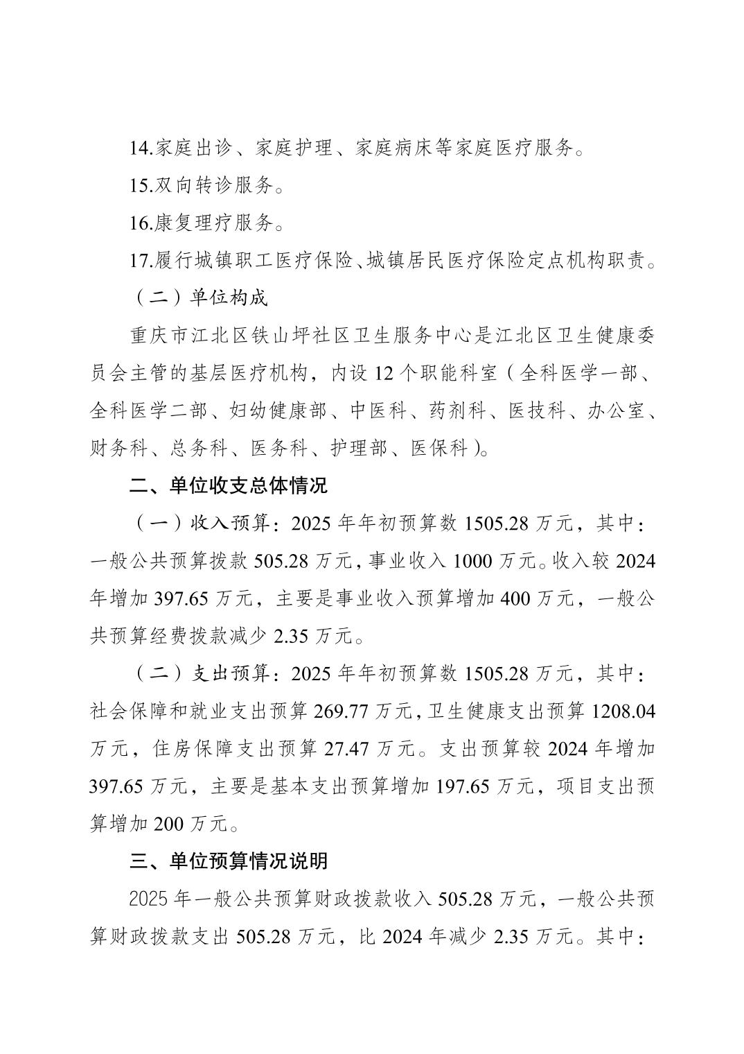 重慶市江北區鐵山坪社區衛生服務中心2025年單位預算情況說明