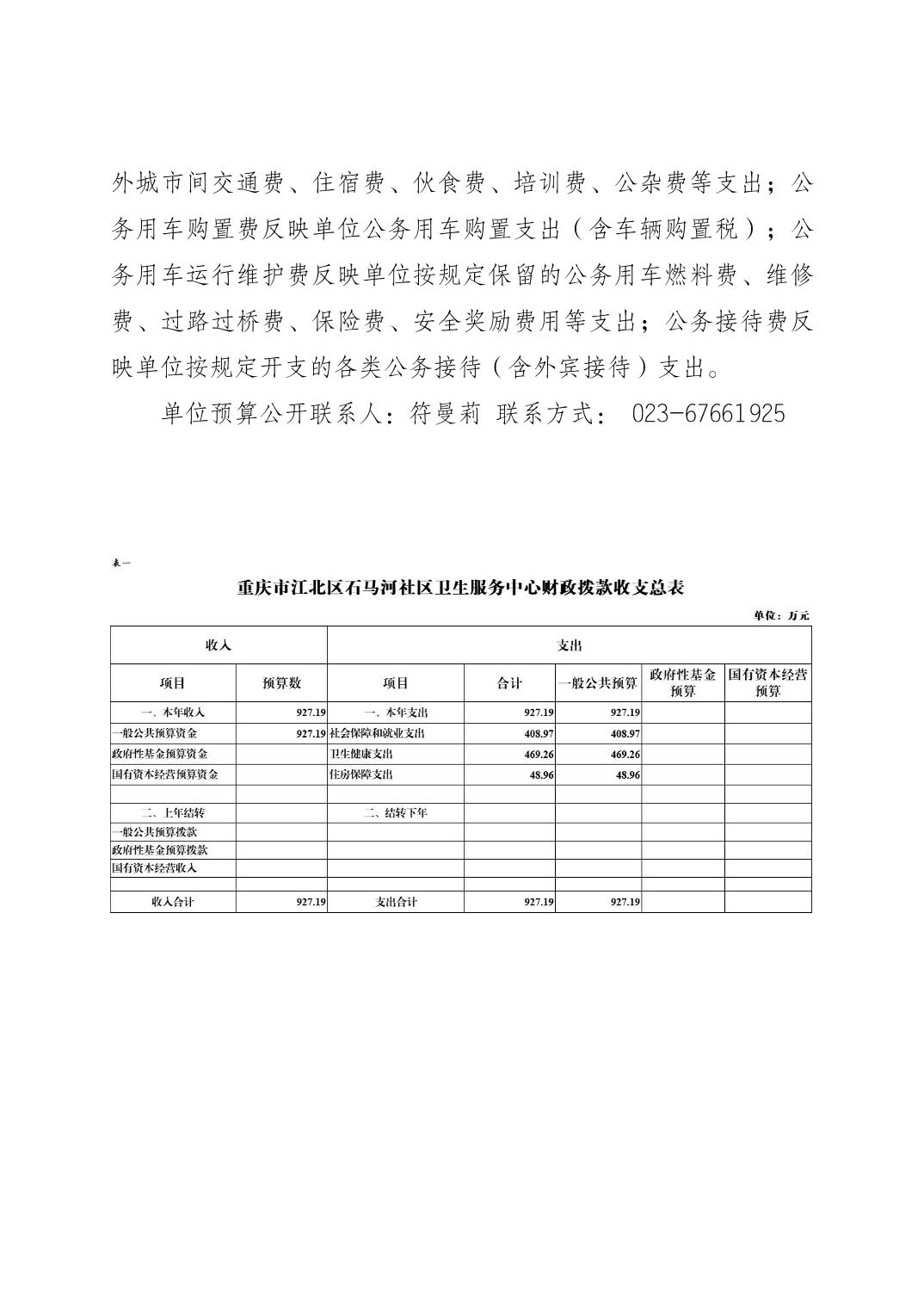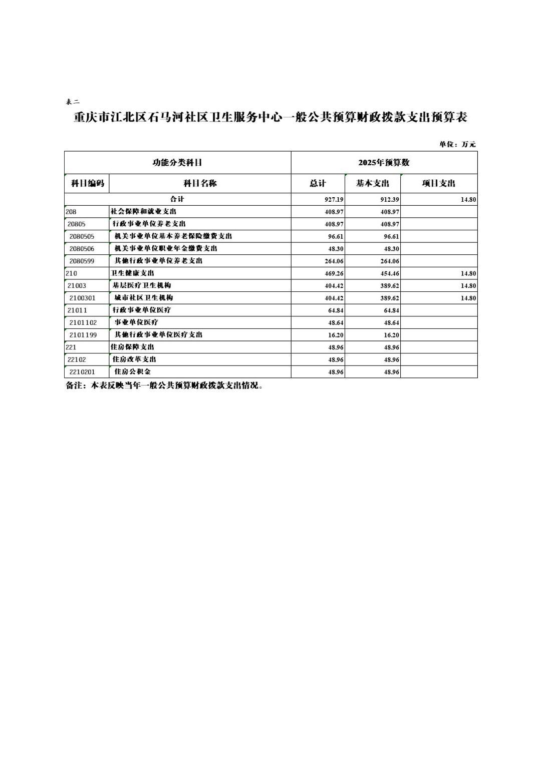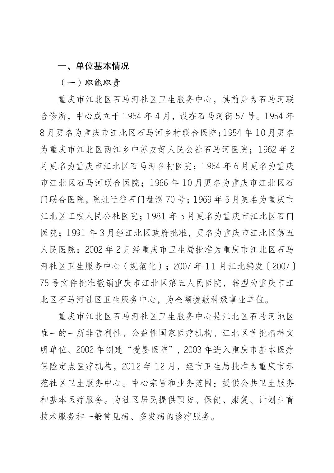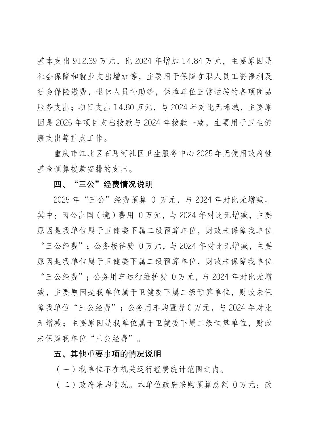 重慶市江北區石馬河社區衛生服務中心2025年度單位預算情況說明