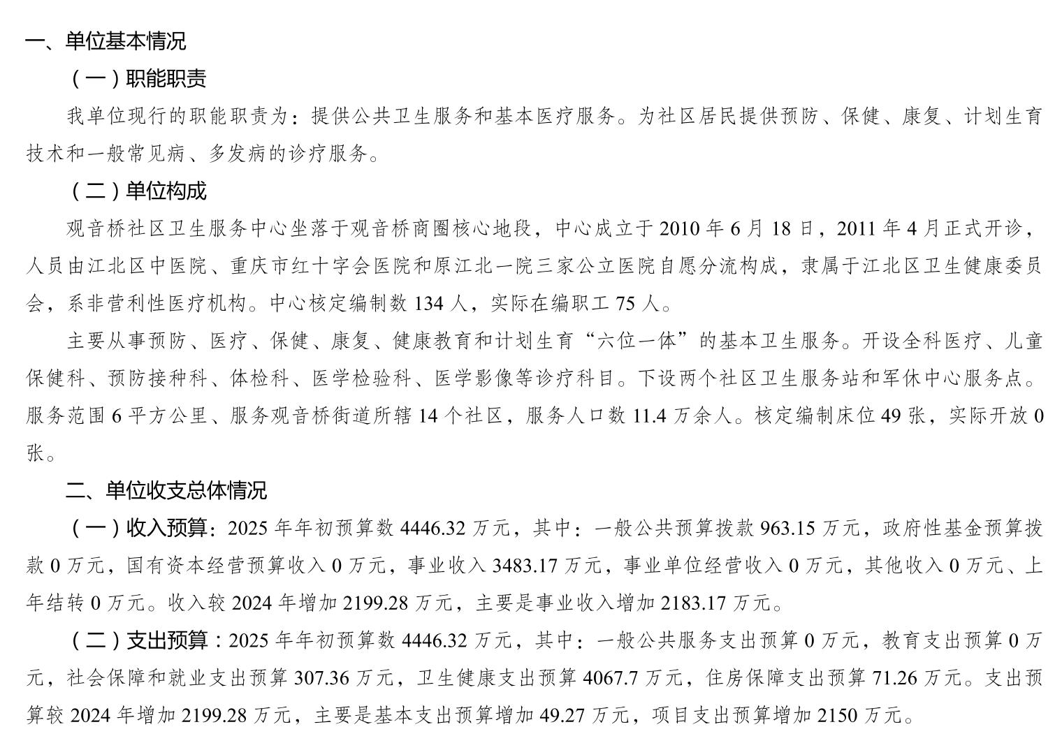 重慶市江北區觀音橋社區衛生服務中心2025年部門預算情況說明
