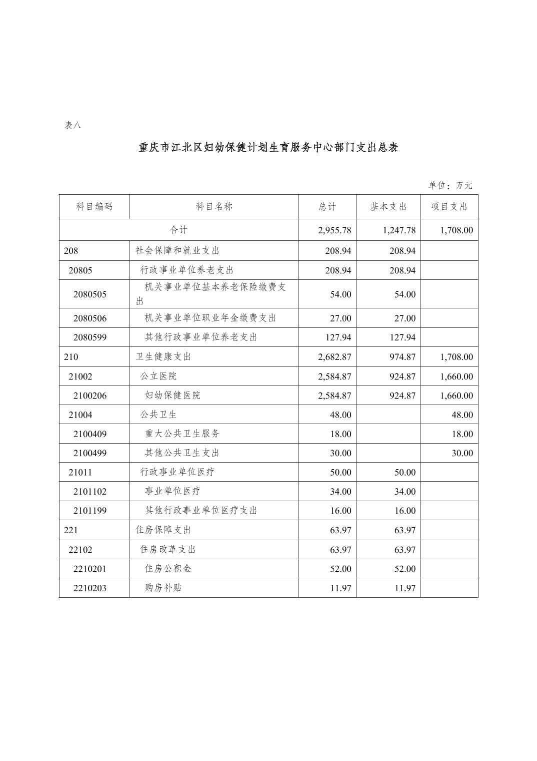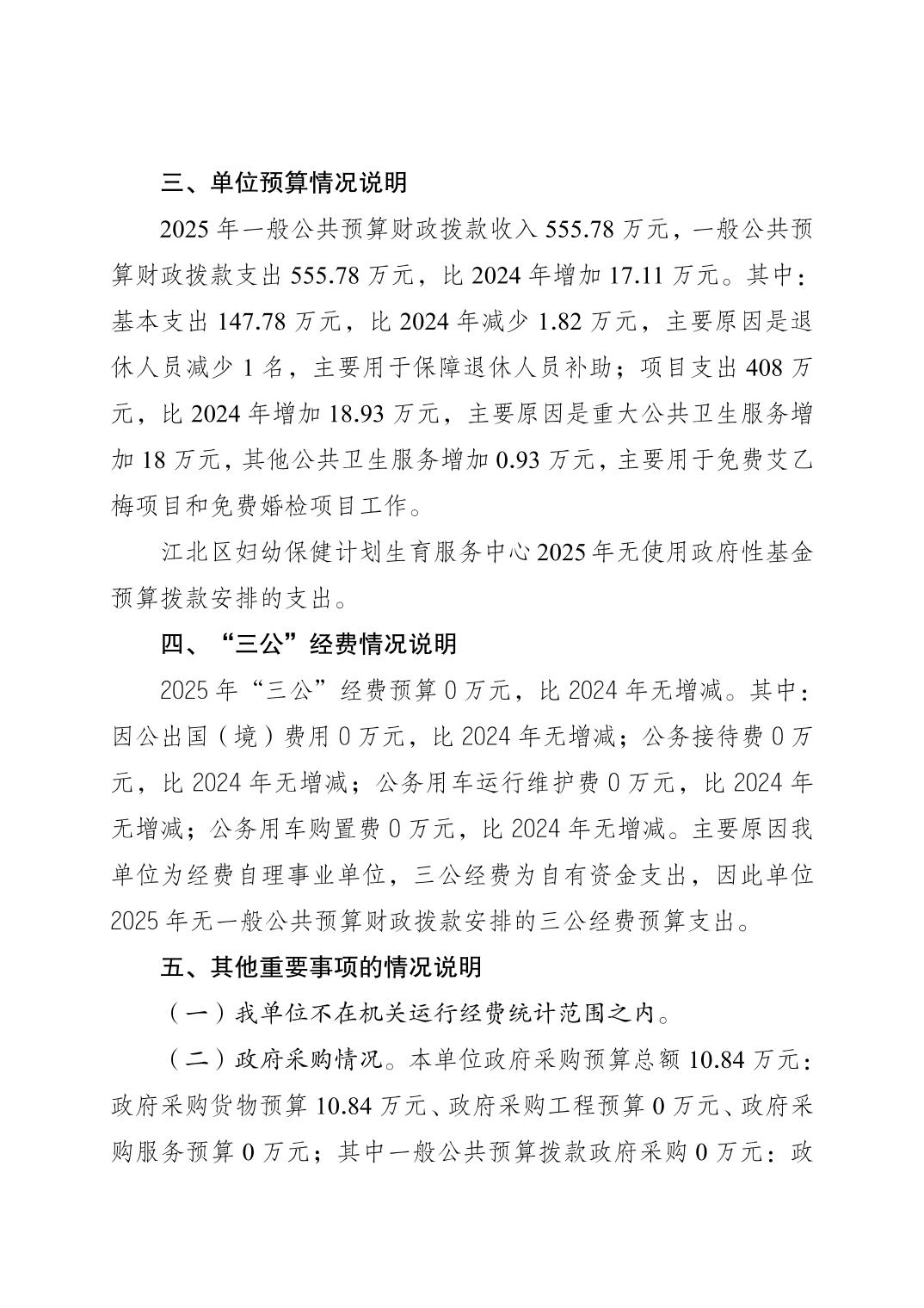 重慶市江北區婦幼保健計劃生育服務中心2025年單位預算情況說明